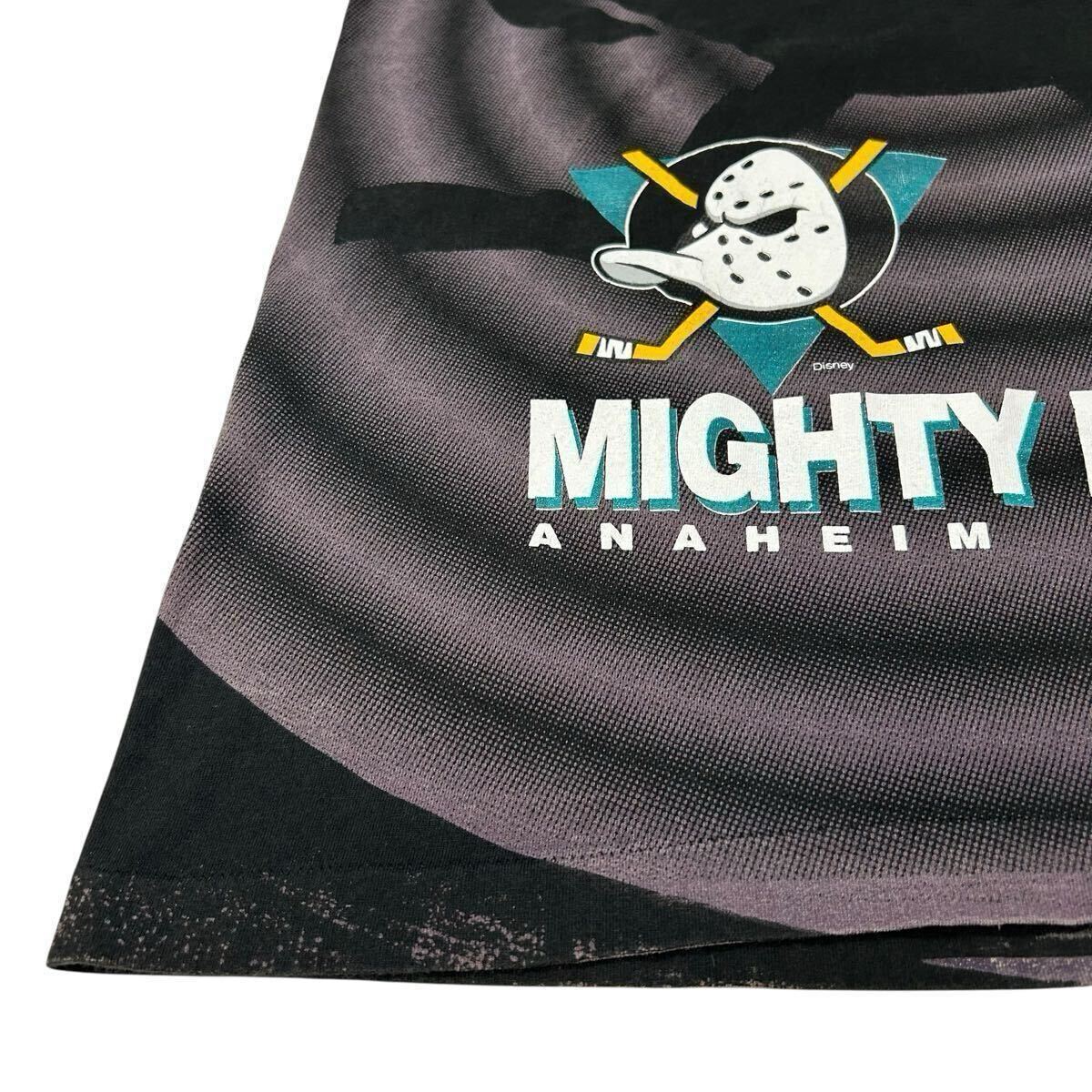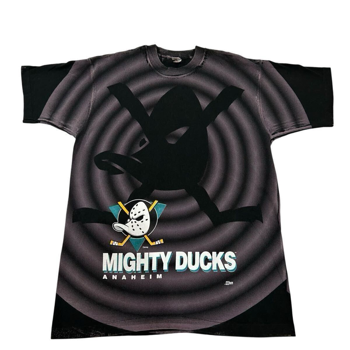 商品* レア! 1990年代頃 NHL Anaheim Mighty Ducks ホッケー オールオーバープリント Tシャツ USA製 フルーツオブザルーム シングルステッチ