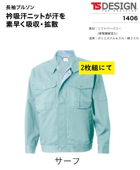 ビックイナバ特価◇TSDESIGN 1406[春夏]長袖ブルゾン【32サーフ・4Lサイズ】ソフトバーバリー生地・定価1枚10560円の品、2枚即決2980円