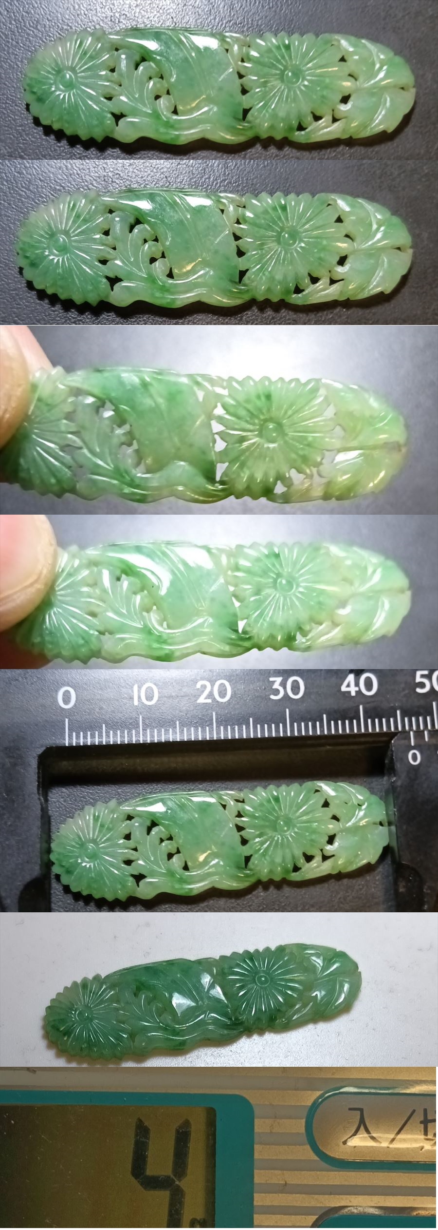 透明 緑 本翡翠 帯留め 重さ4g 中国古美術 古美味 時代物 古董品