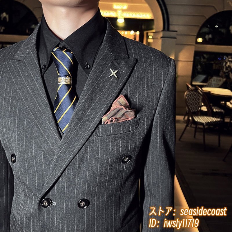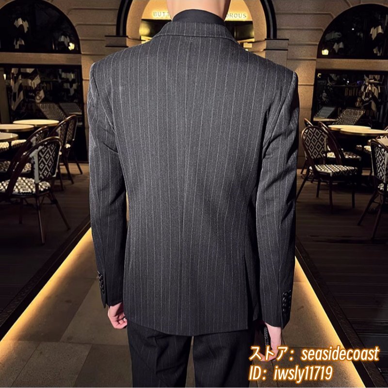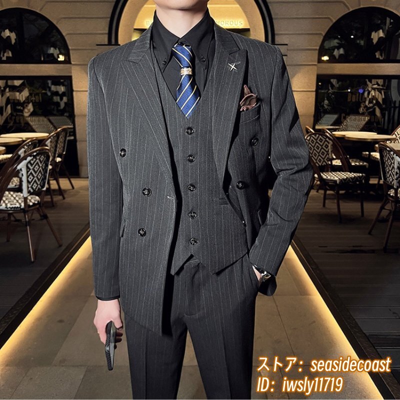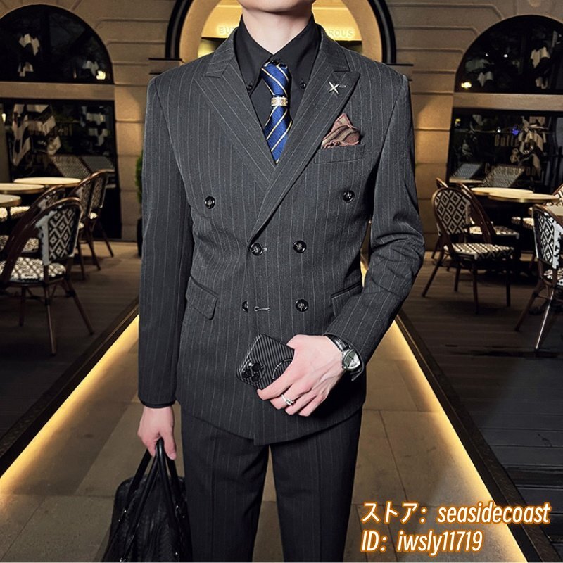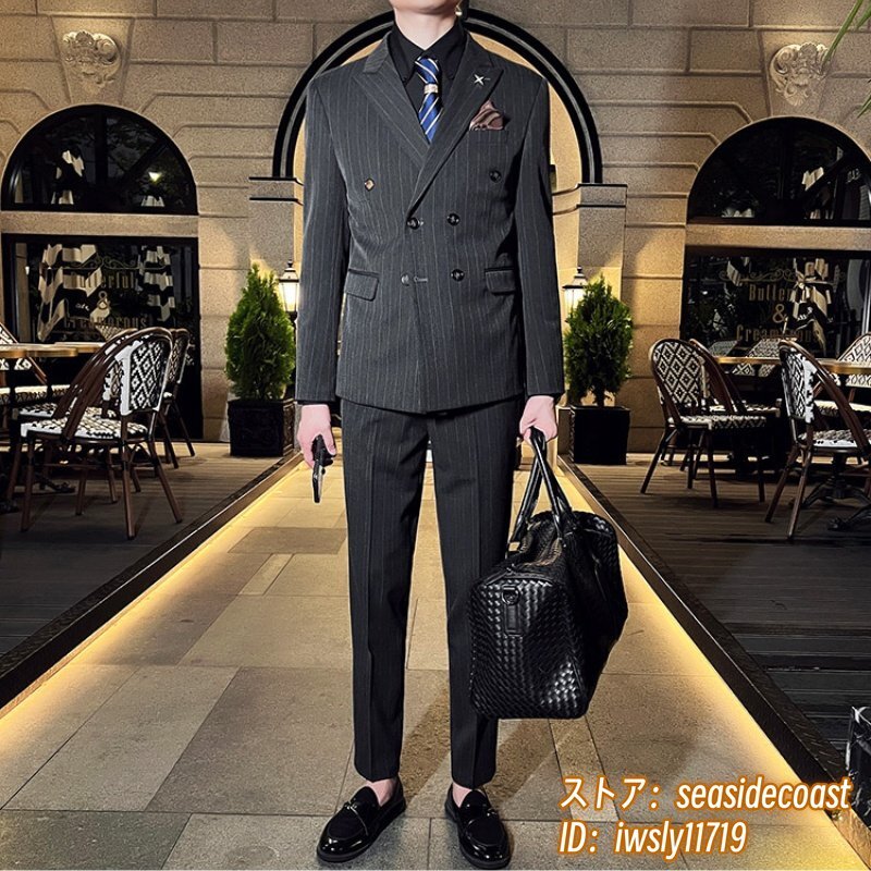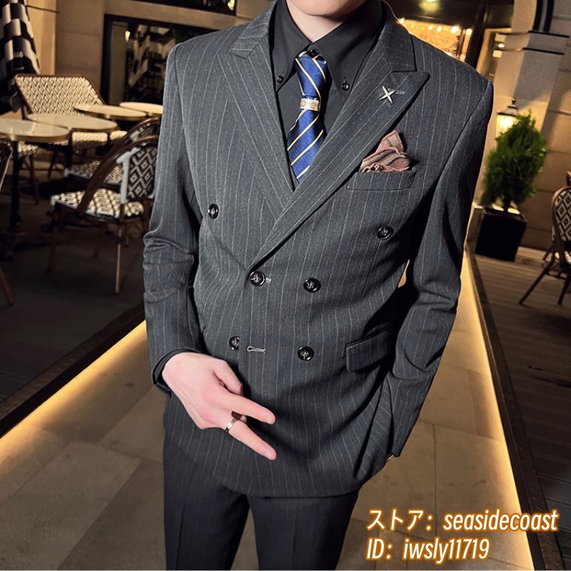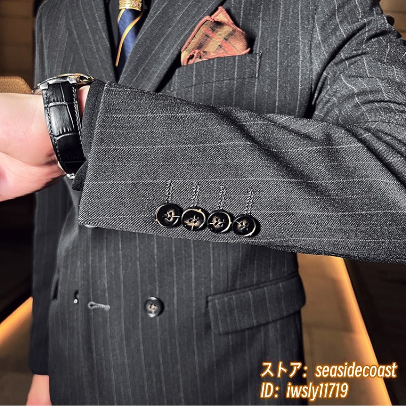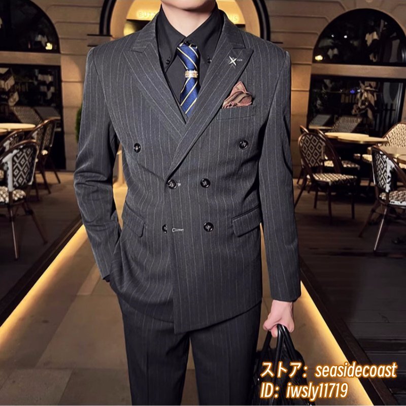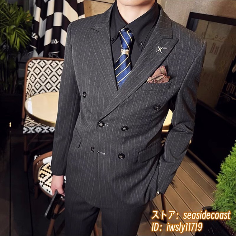 極上新品♪スリーピース メンズ ダブルスーツ スーツセット ストライプ柄 結婚式 スタイリッシュ 背広 二つボタン 紳士服 ダークグレー 5XL