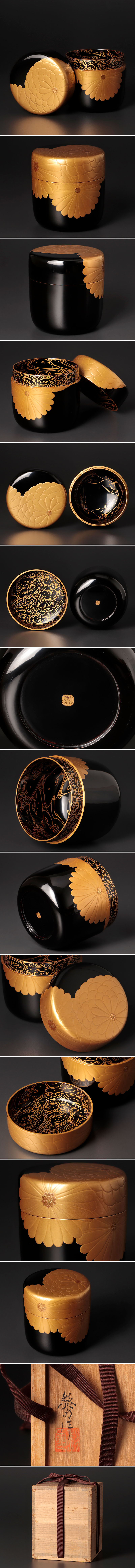 美しい波文様と雅やかな菊の蒔絵が目を引く品の良い棗です。 ★商品は黎明の作品である事を保証致します。 |