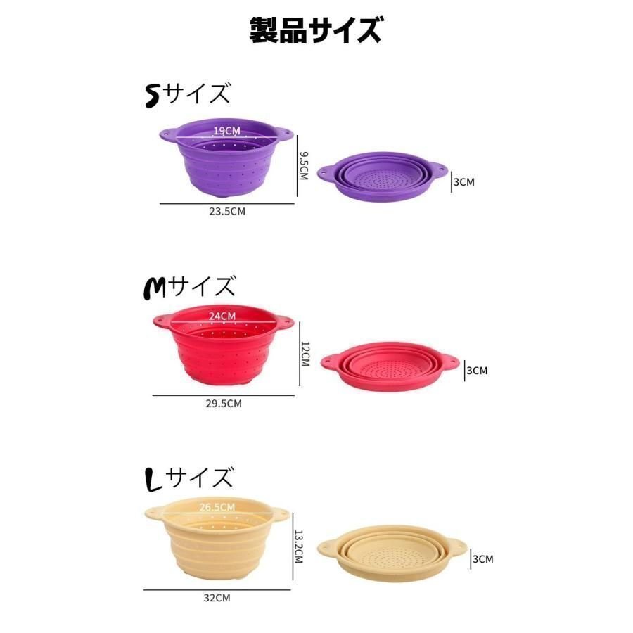 新しい未使用 取っ手付き 野菜 水切り おりたたみ式 ザル 伸縮可能な折り畳み式シリコンボウル ブルーL