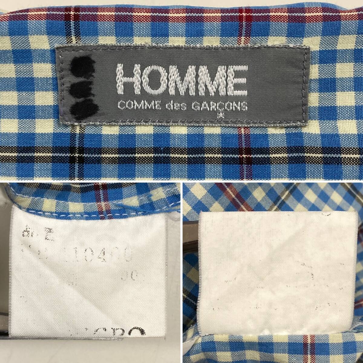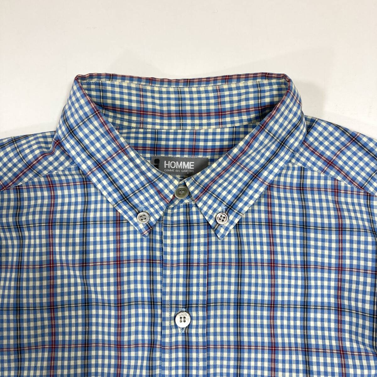 80s デカオム COMME des GARCONS HOMME チェック ボタンダウン 長袖 シャツ 青系 コムデギャルソン VINTAGE archive 5070435