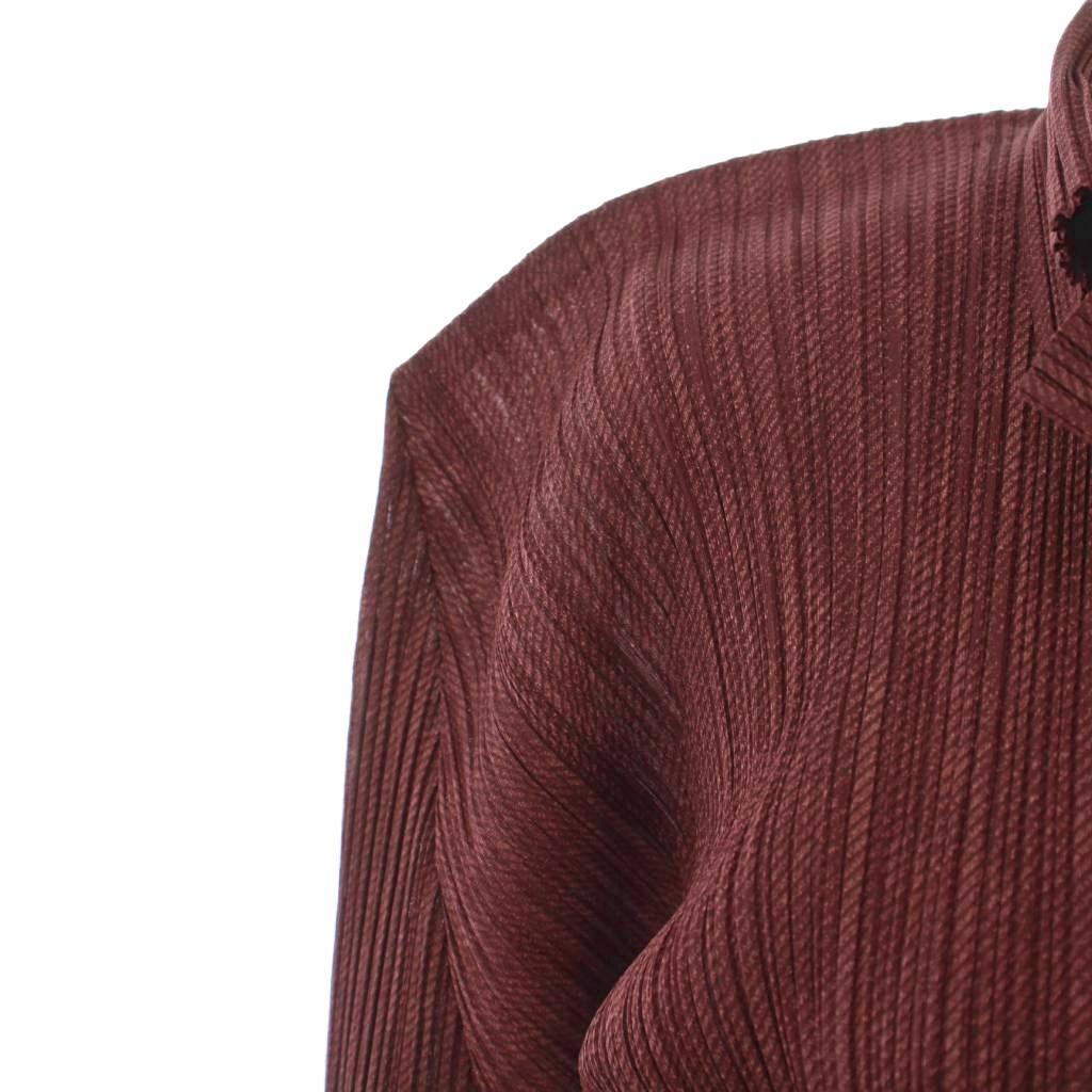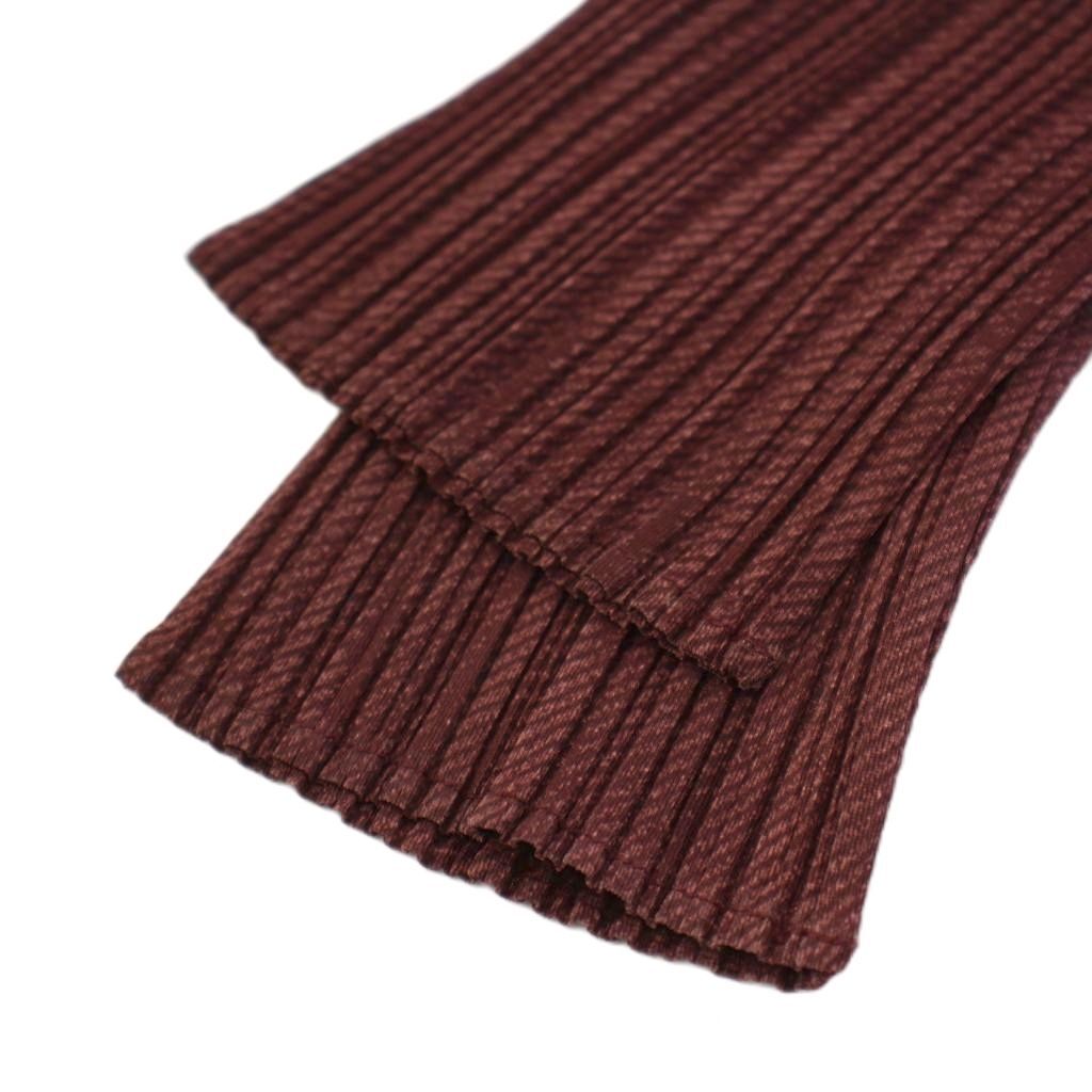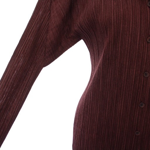 プリーツプリーズ PLEATS PLEASE イッセイミヤケ シャツワンピース ひざ丈 長袖 オープンカラー ストレッチ 3 ボルドー /BB レディース