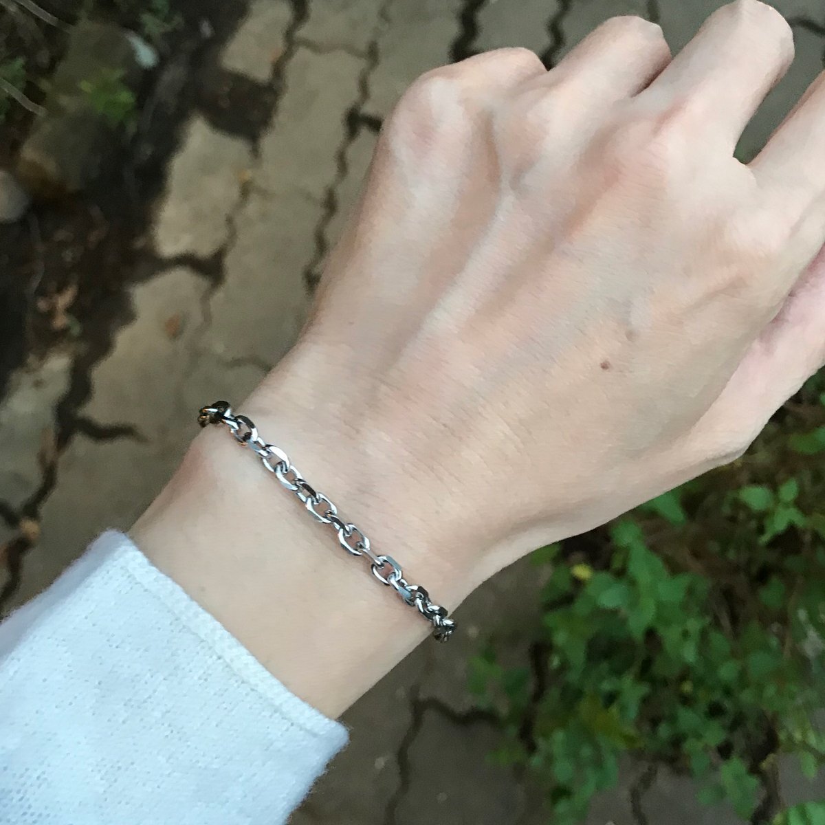 太めのチェーンは内径が小さくなりきつくなります。サイズが分からない方は家にある同じくらいの太さの紐などで手首周りを測ってみてくださいね。