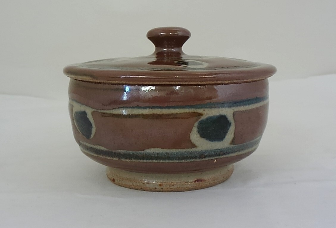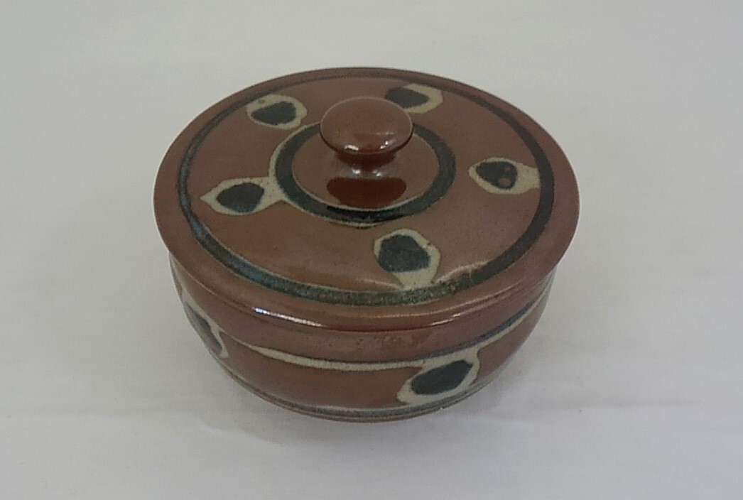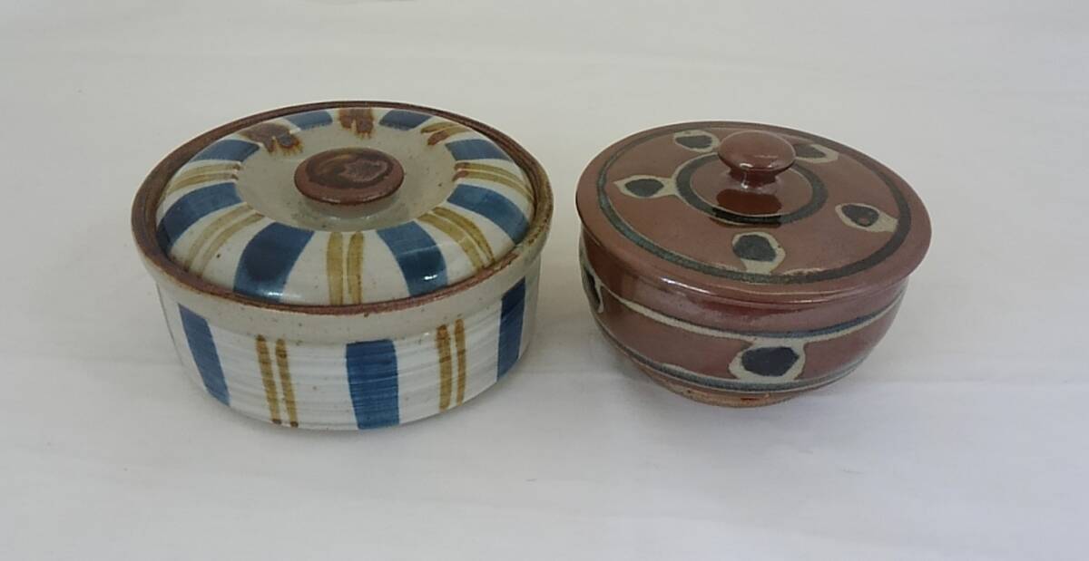 【菊水-479】(KH)陶器 2種類 2個セット/蓋付容器/茶色/青茶灰色/和製食器/ サイズ違い/割れ物/中古(IT) |