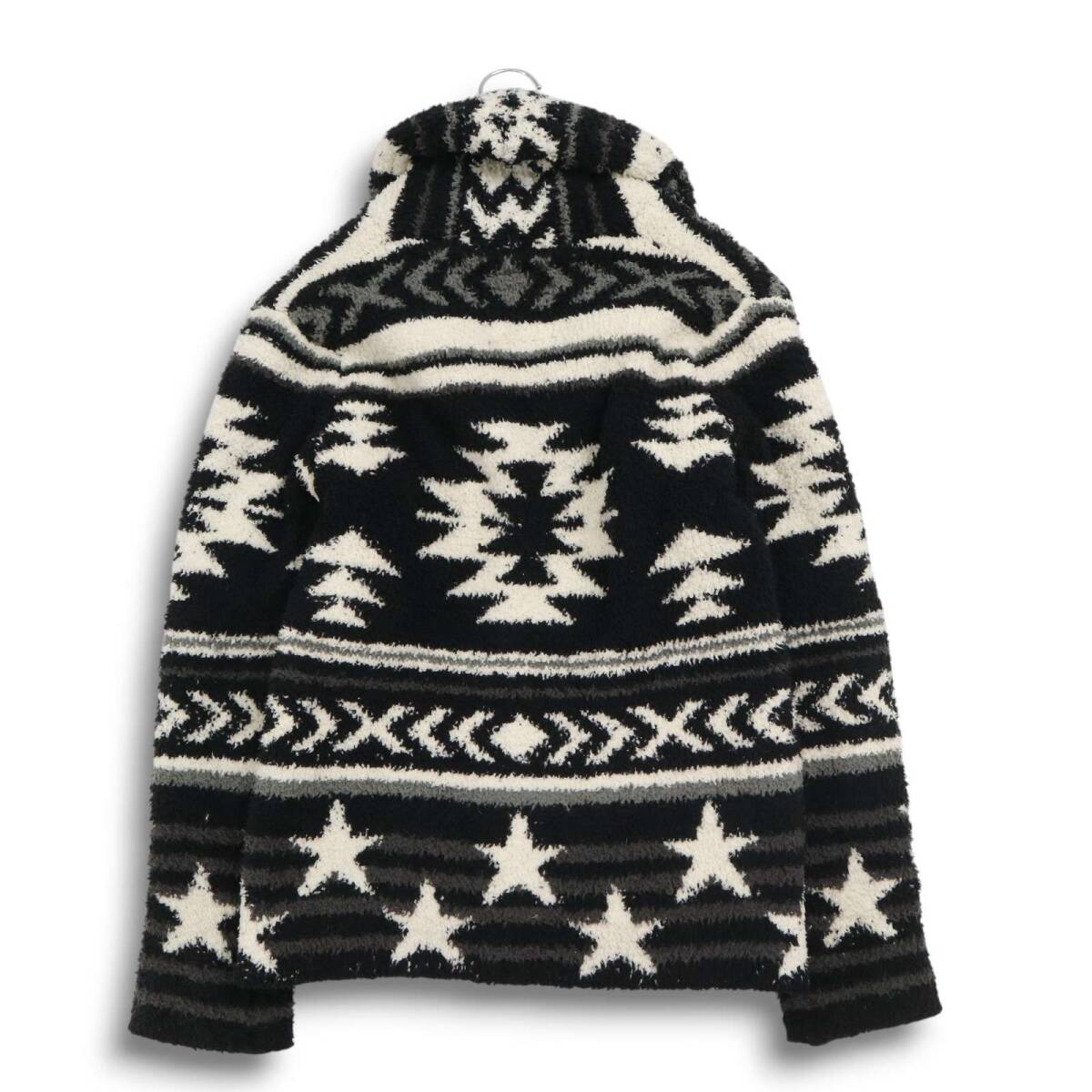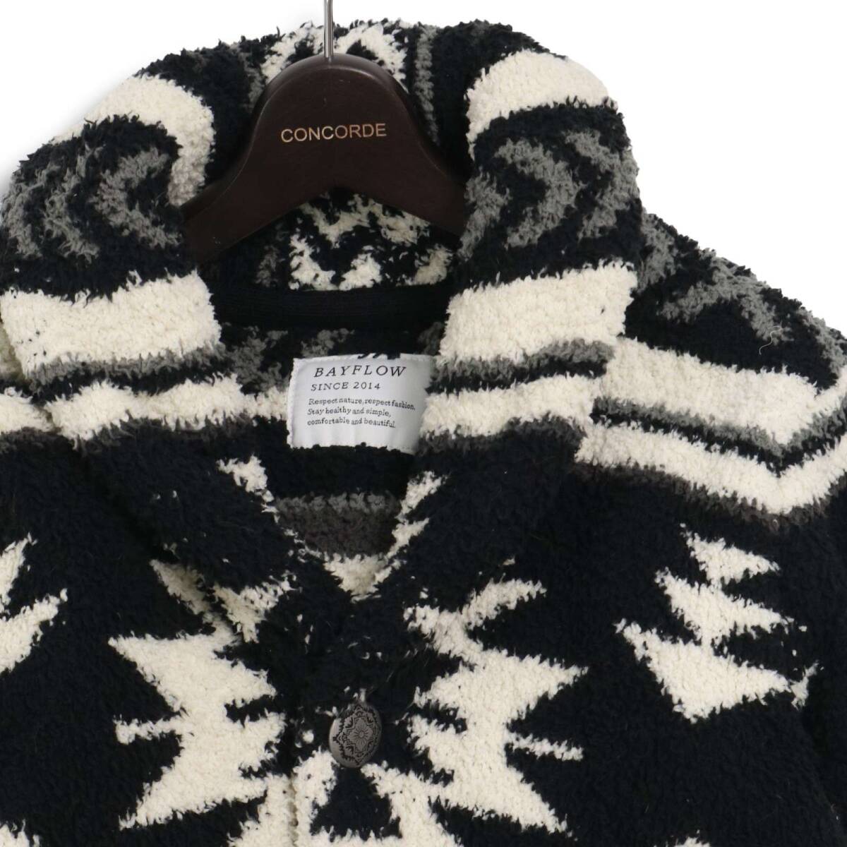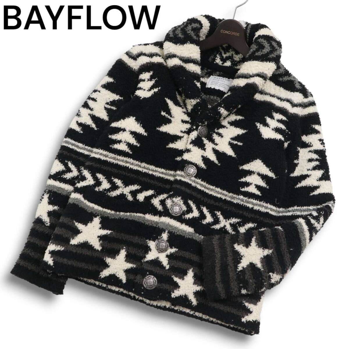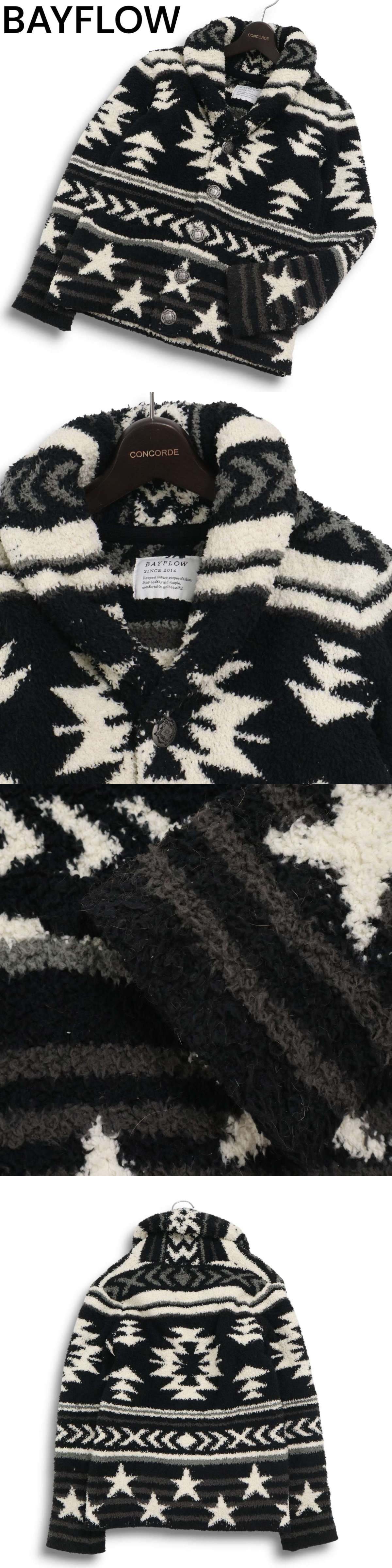 BAYFLOW ベイフロー 秋冬★ ネイティブ柄 スター ボーダー ボア パイル ショールカラー ニット カーディガン Sz.2 メンズ