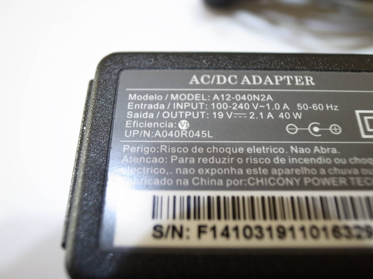 USEDのユニットコム ノート用ACアダプター/A12-040N2Aです。 UP/N A040R045L です。お間違いなく。 19V 2.1A 40Wです。少し細い端子です。 IIYAMA・マウスコンピューター・フロンティアなどのノート用です。 詳しくは、メーカーのHPにてお調べください。 写真は流用しています 消費税不要です |