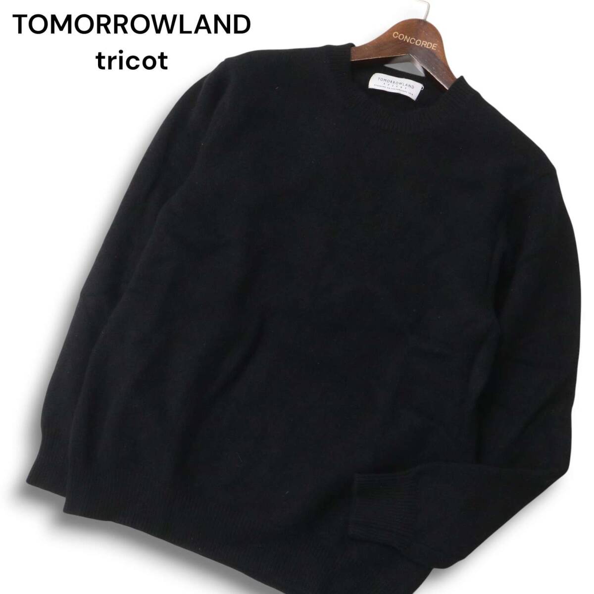 TOMORROWLAND tricot トゥモローランド 秋冬 ウール100%★ クルーネック セーター ニット Sz.L メンズ 黒