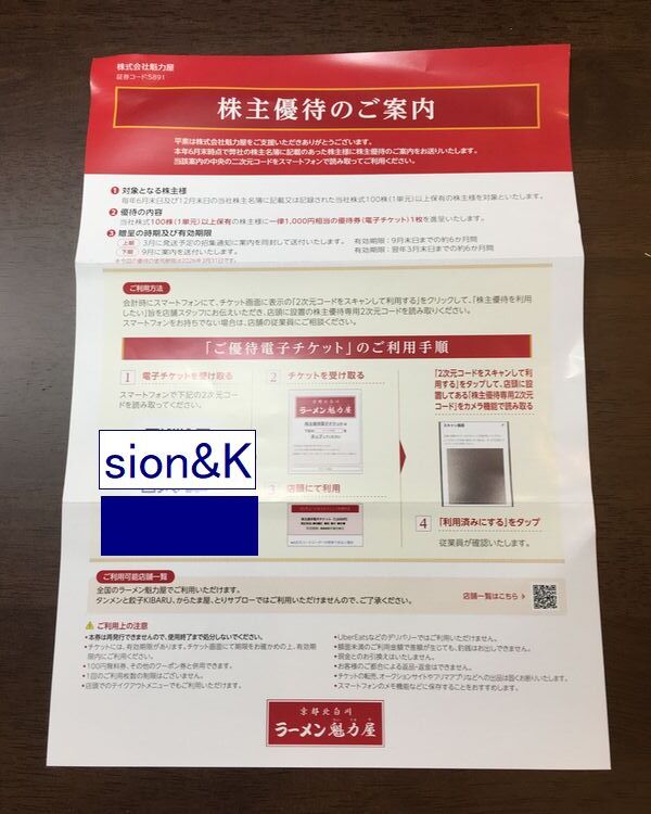 魁力屋株主優待電子チケット1000円分です。期限は2026年3月31日です。 落札、ご入金後、取引ナビより落札者様のメールアドレスをお知らせください。写メをお送りします。 どうしてもメールアドレスを教えたくない方は、写メのダウンロード用URLを取引ナビでお知らせします。 現品をご入用の場合は、送料をご負担頂ければお送りします(落札後にご相談に応じます)。 他の株主優待券もこちらに出品していますので、よろしければご利用ください。 このオークションは即決ですので、「入札=落札」です。 オークション終了時刻に関係なく、どなたかにご入札を頂いた瞬間に終了になる「早い者勝ち」です。 |