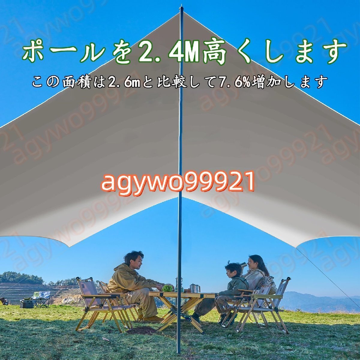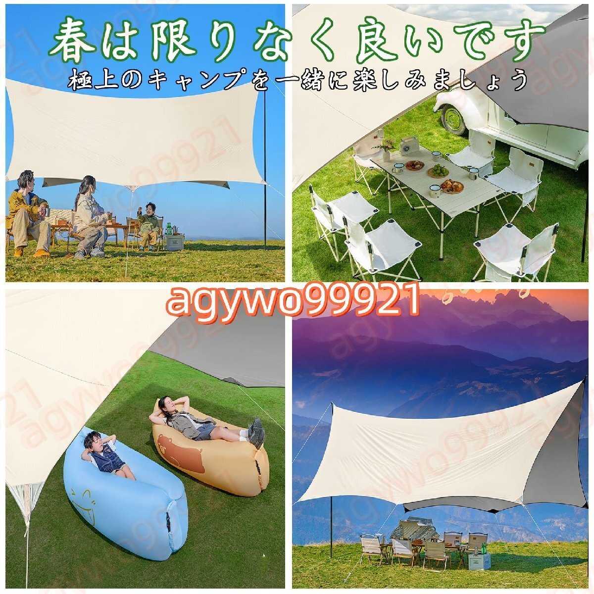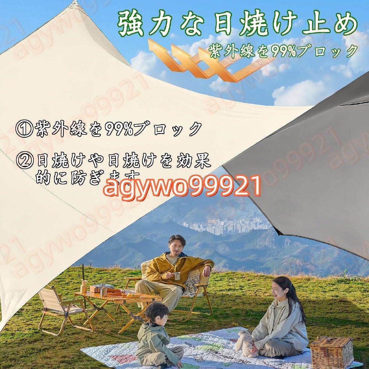 防水性と日焼け止め:ターポリンは防水生地で作られており、防水テープの縫い目が防水性を高め、タープが乾いた状態に保たれ、100%防水です。このキャンプ用タープは日よけとしても使用でき、紫外線を99%カットし、日差しから肌を守ります。