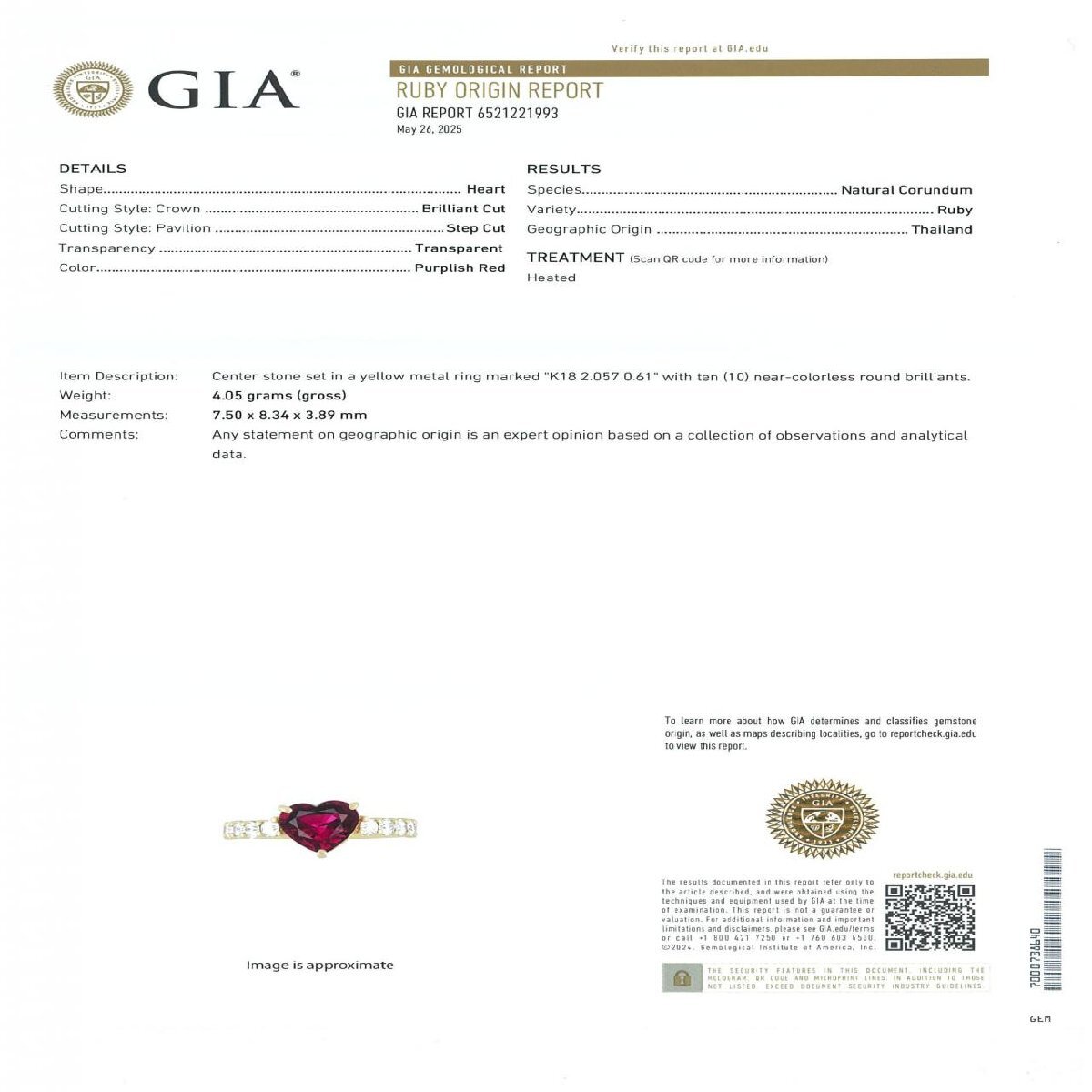付属品 | GIA鑑別書 タイ産 |