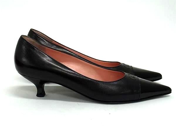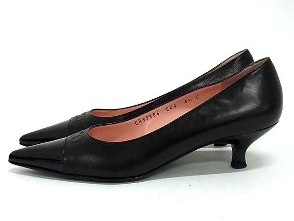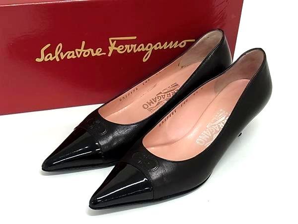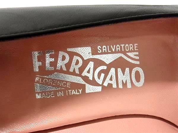Salvatore Ferragamo フェラガモ ダブルガンチーニ レザー ヒール パンプス サイズ 6 1/2 (約24.0cm シューズ 靴 ブラック系 DJ9588