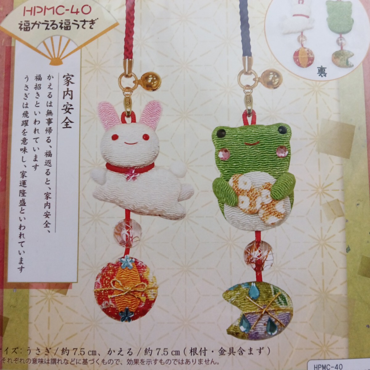 縁起まねきのちりめん根付 *:☆~ 福かえる福うさぎ ☆:*