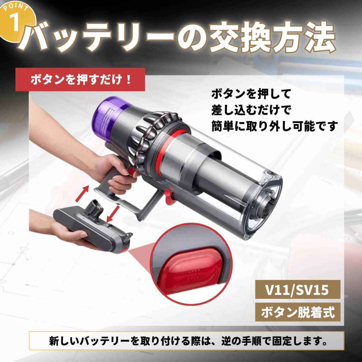 A ダイソン V11 SV15 互換バッテリー ボタン脱着式 PSE認証 Fluffy Absolute Extra 4000mAh