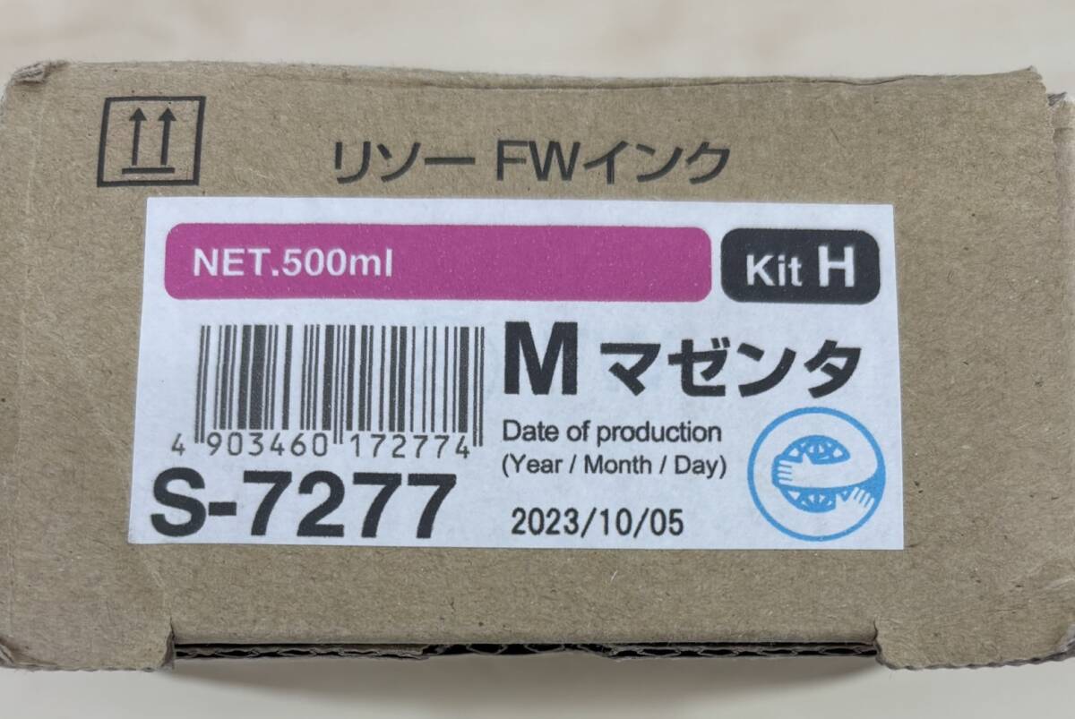 [理想科学工業] リソーFWインク S-7277 Kit H 500ml   新品・未開封品   2023/10/05  NET:500ml