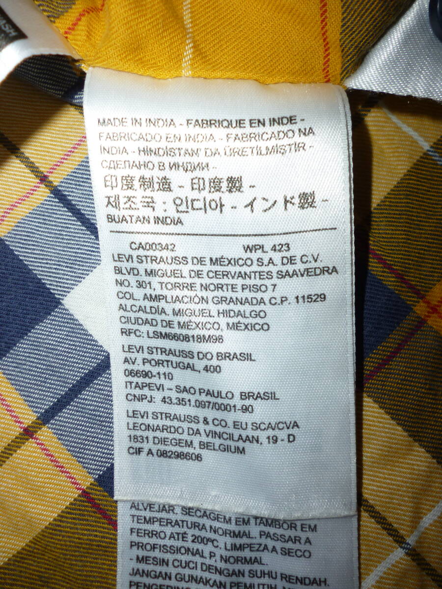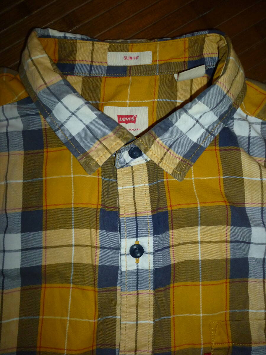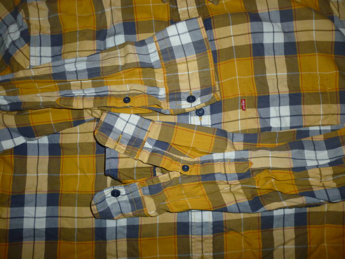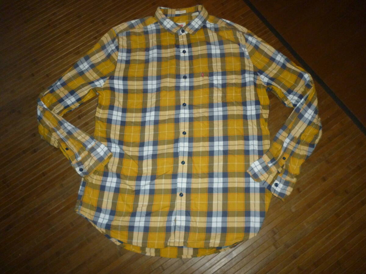 1019-109♂:Levi's リーバイス 長袖シャツ インド製 size.XL 色.黄色×青チャック
