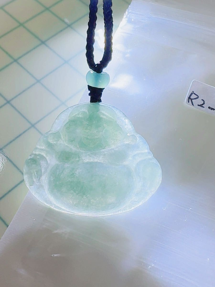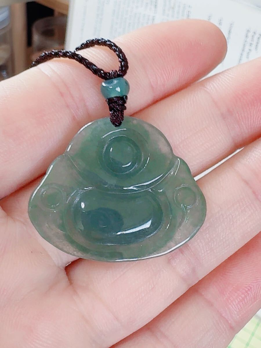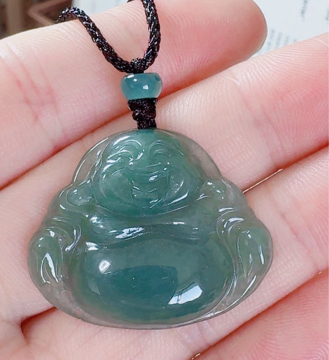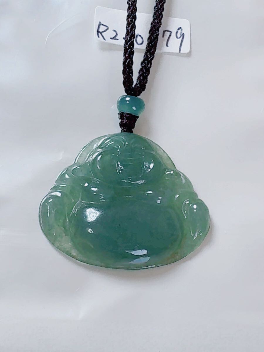 R2-01179天然本翡翠《本物保証》仏様 油青色氷種ひすいペンダント 一点物 魔除け 昇進 成功 風水 金財運 幸運 幸福 縁起物 パワーストーン
