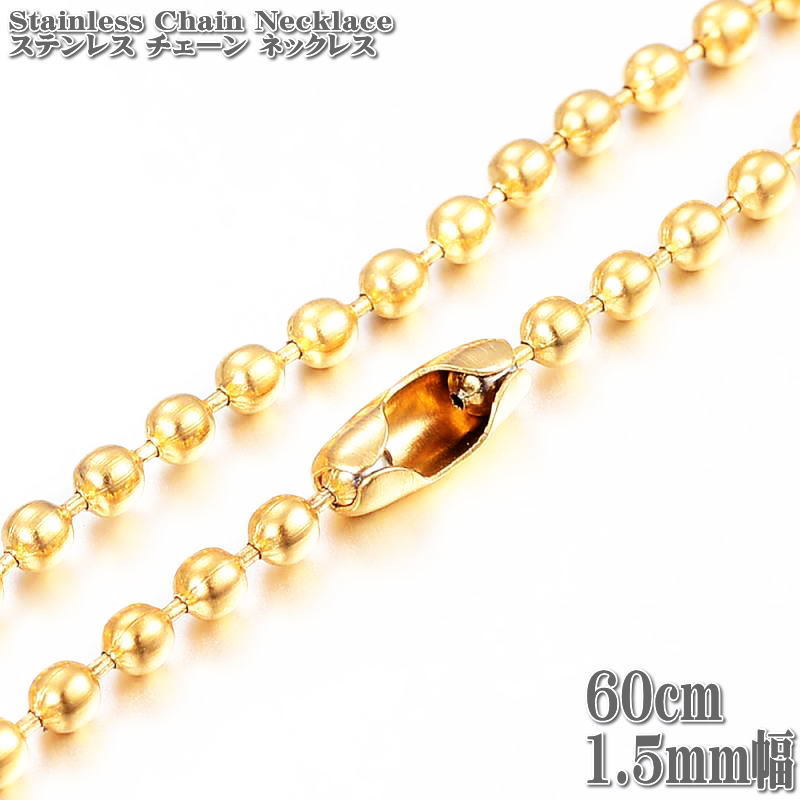 ステンレスネックレス ボールチェーン 約60cm 1.5mm幅 ネックレス ステンレス チェーン ゴールド Stainless Chain | |