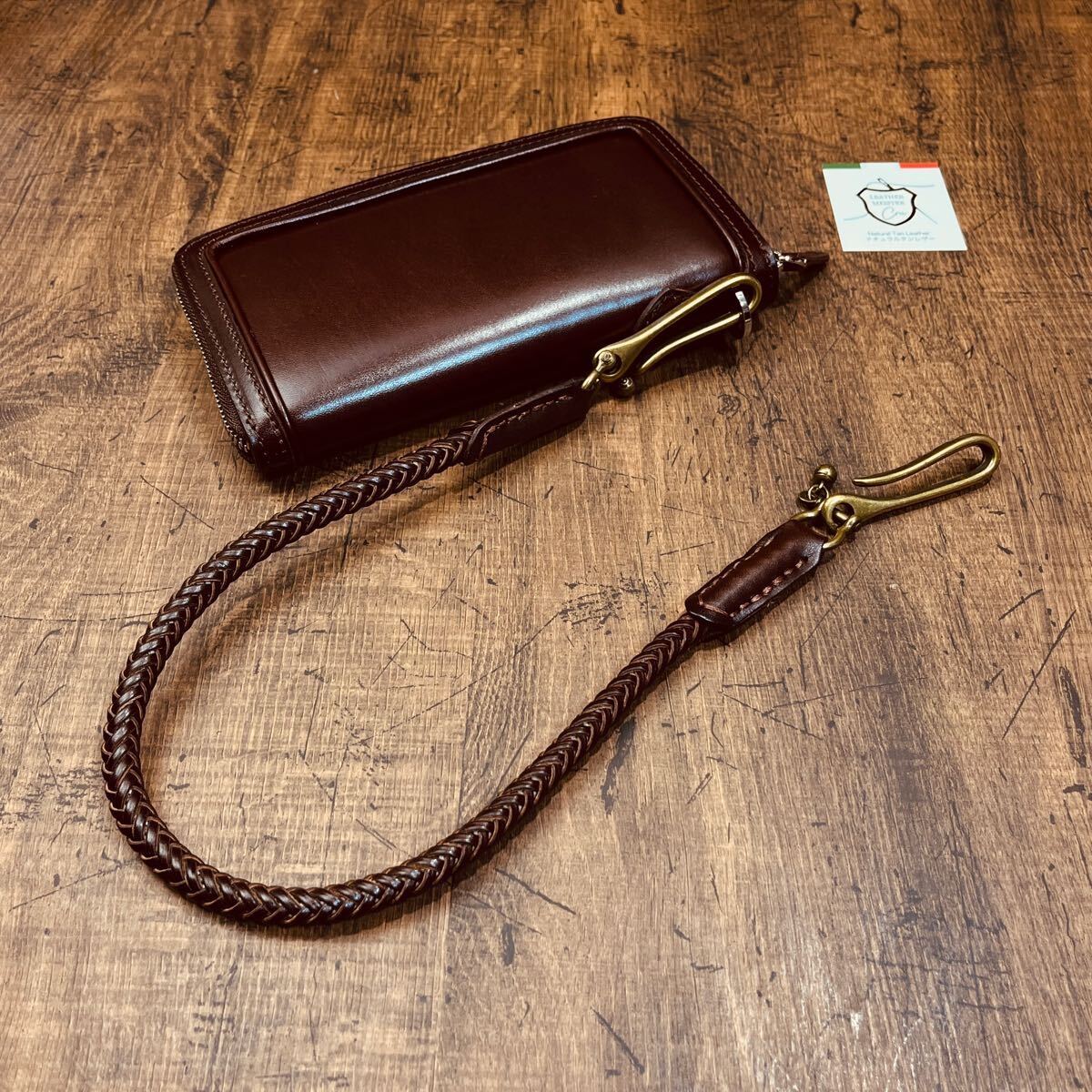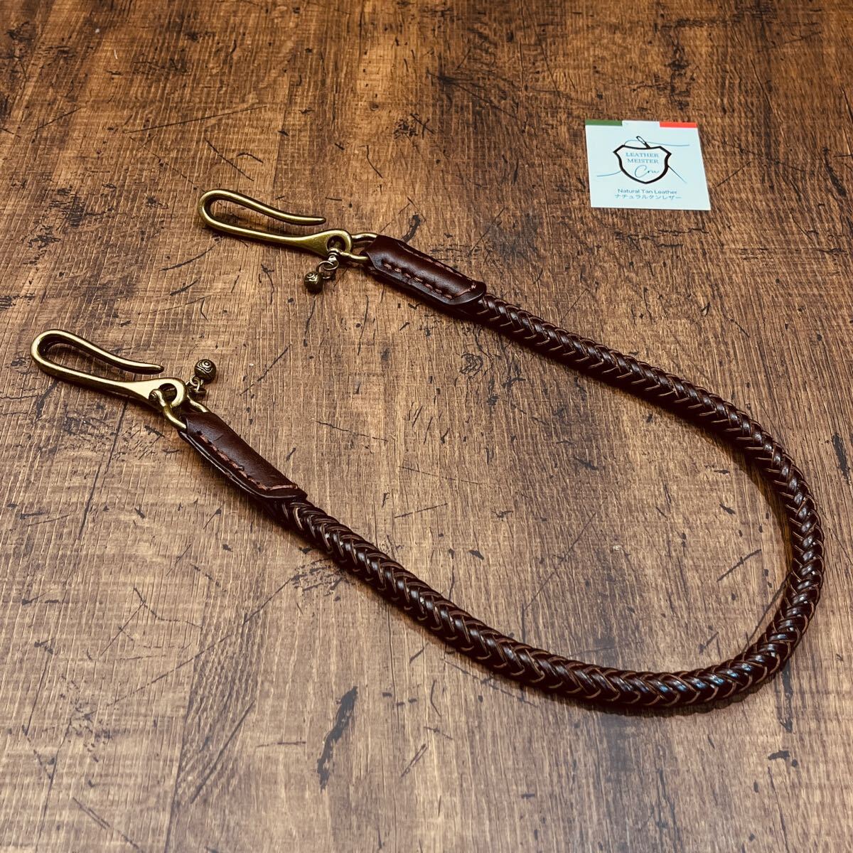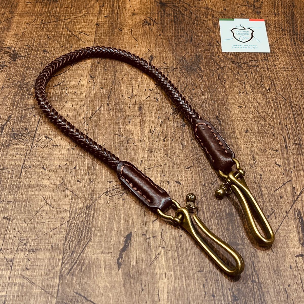 新品 ウォレットチェーン 本革 サドルレザー ウォレットロープ 手編み バイカー レザーウォレットロープ 長財布 メンズ
