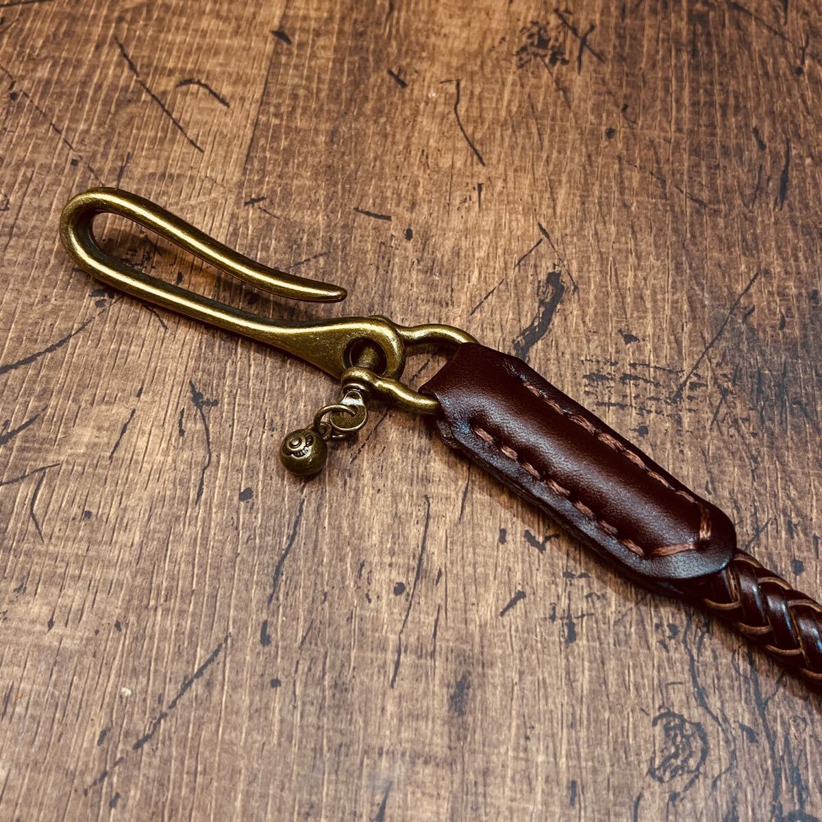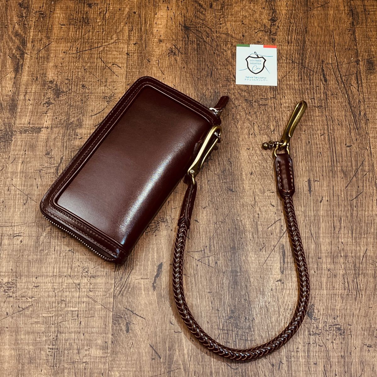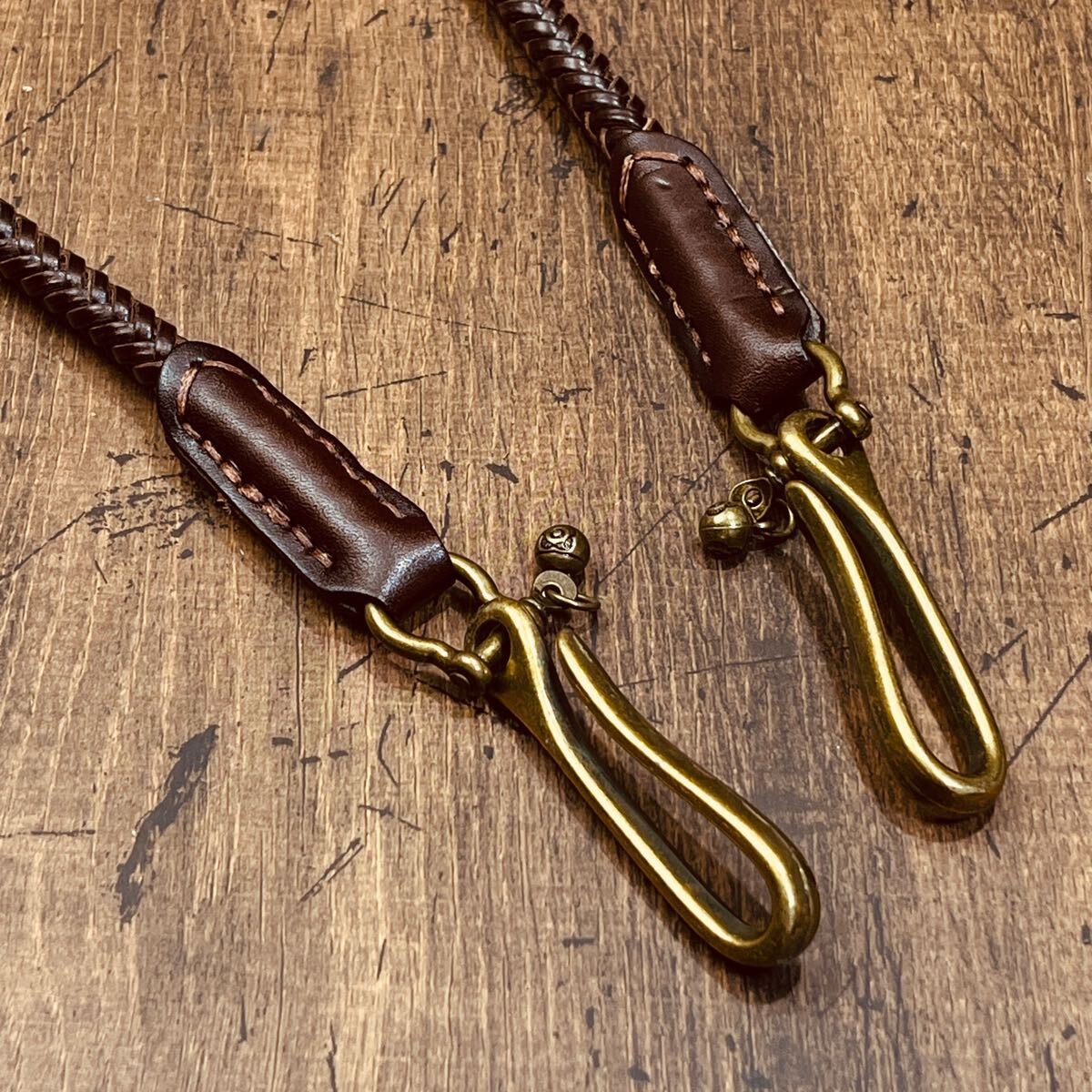 新品 ウォレットチェーン 本革 サドルレザー ウォレットロープ 手編み バイカー レザーウォレットロープ 長財布 メンズ