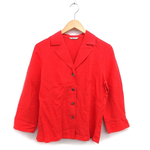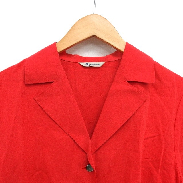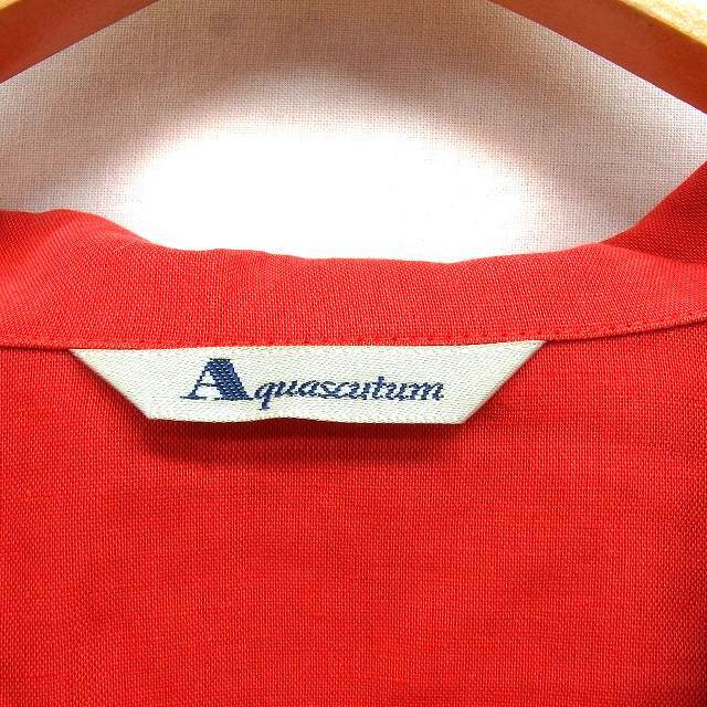 アクアスキュータム AQUASCUTUM オープンカラー シャツ ブラウス リネン混 コットン混 透け感 長袖 赤 レッド /NT24 レディース