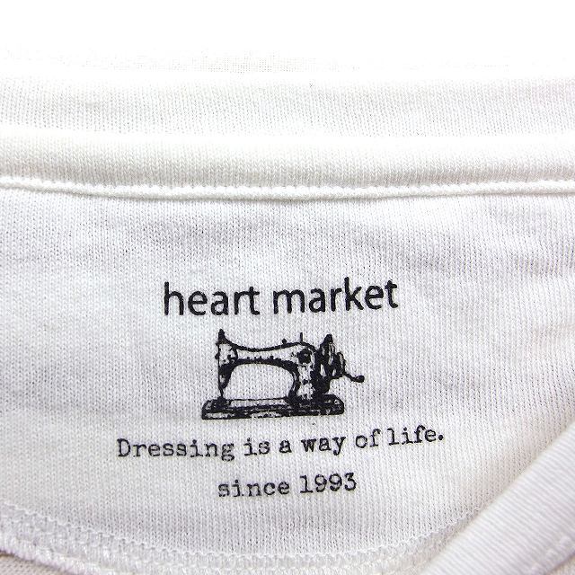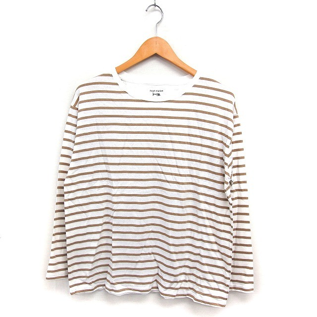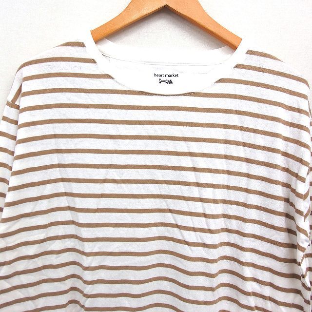 ハートマーケット HEART MARKET ボーダー Tシャツ 長袖 丸首 コットン 綿 F ベージュ ホワイト 白 /FT25 レディース