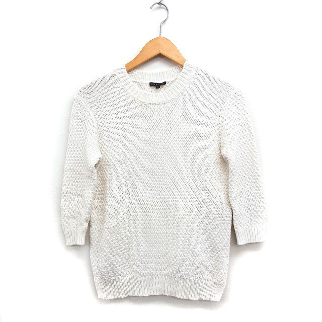 セオリー Theory コットン ニット セーター 7分袖 丸首 ウール混 S ホワイト 白 /FT34 レディース