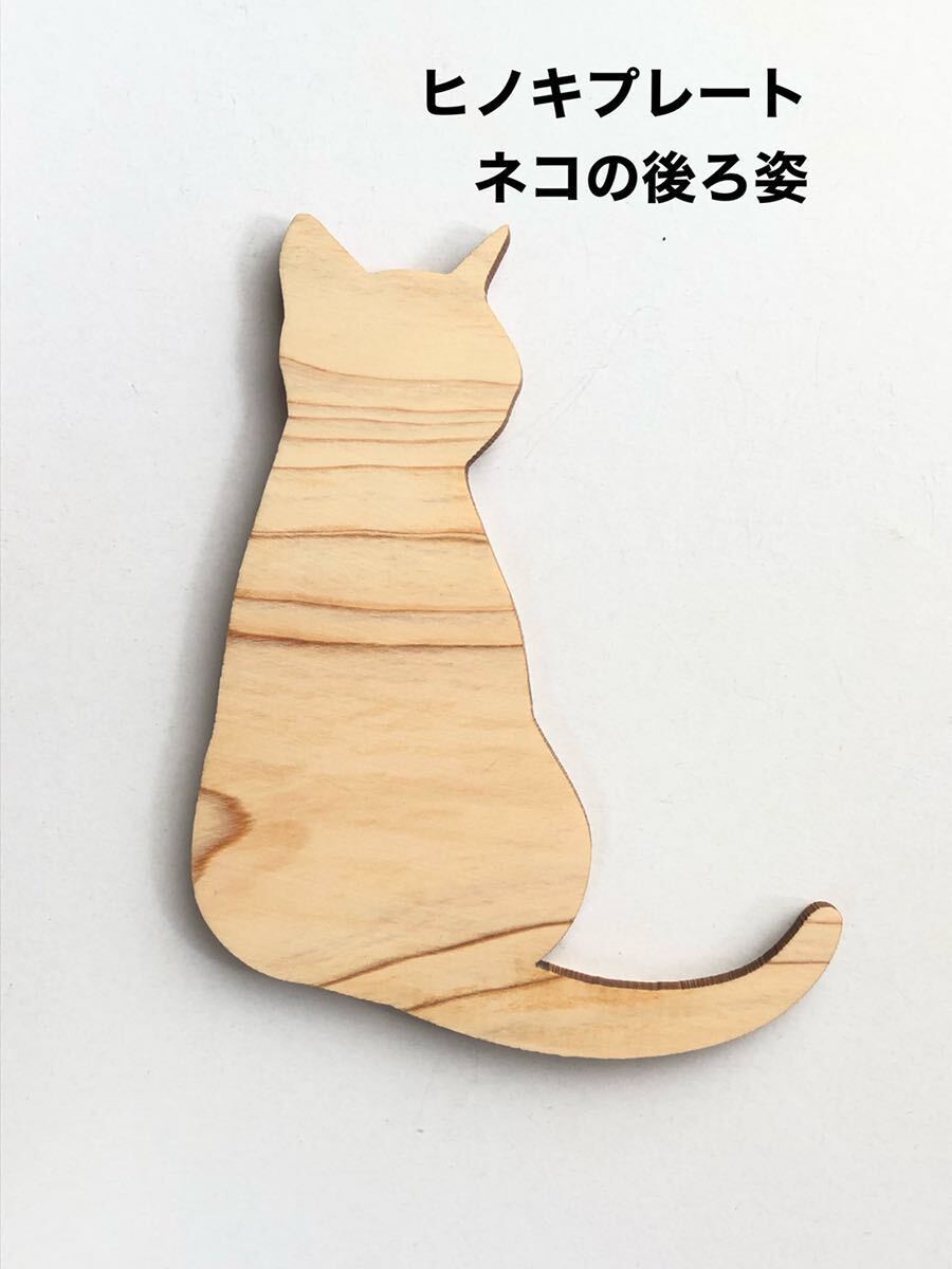 【うちの子】ネコ 2枚 ひのきプレート オシャレ 高級感 ウォールデコ インテリア雑貨 壁飾り 壁掛け オブジェ 木製 素材パーツ