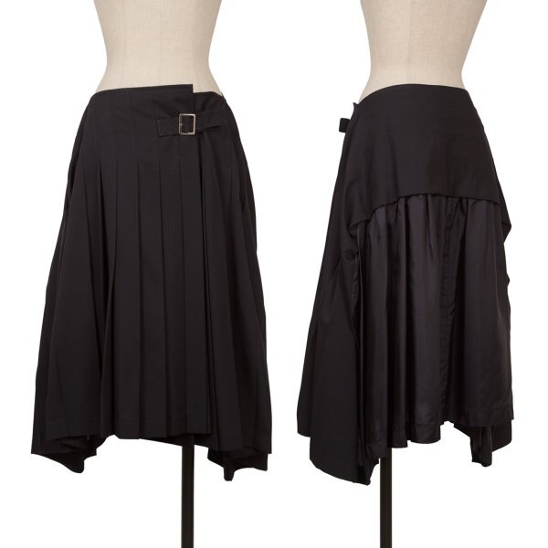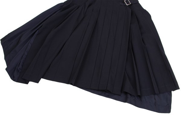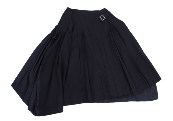 | トリココムデギャルソンtricot COMME des GARCONS ウールギャババック切替プリーツラップスカート 紺M |
