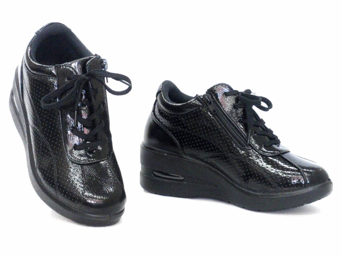 | ニューペペ 1004 ブラック 24.0cm 厚底 エアークッション エナメル パンチングメッシュ ファスナー付き New PePe | |