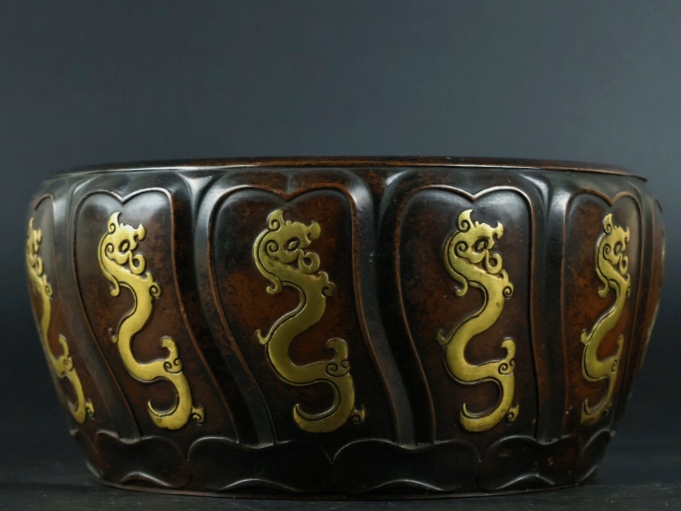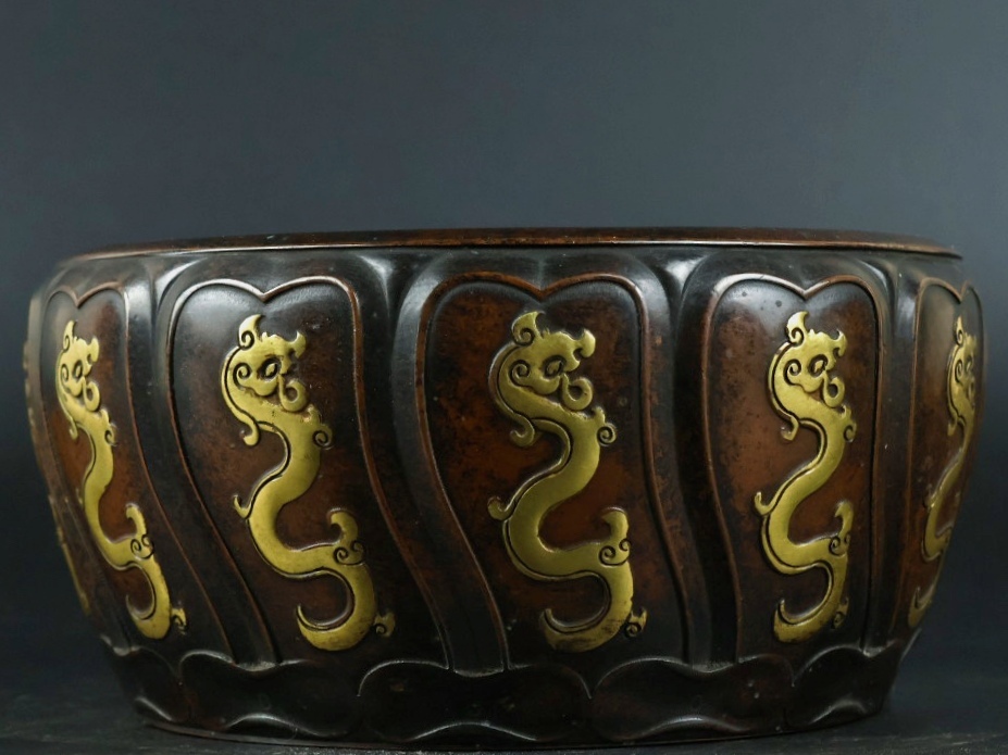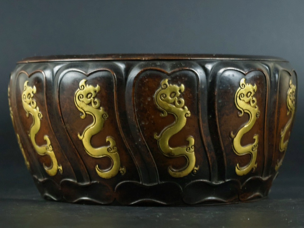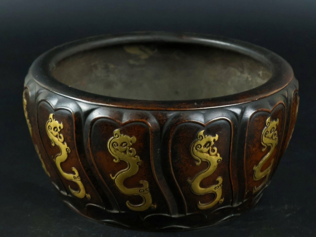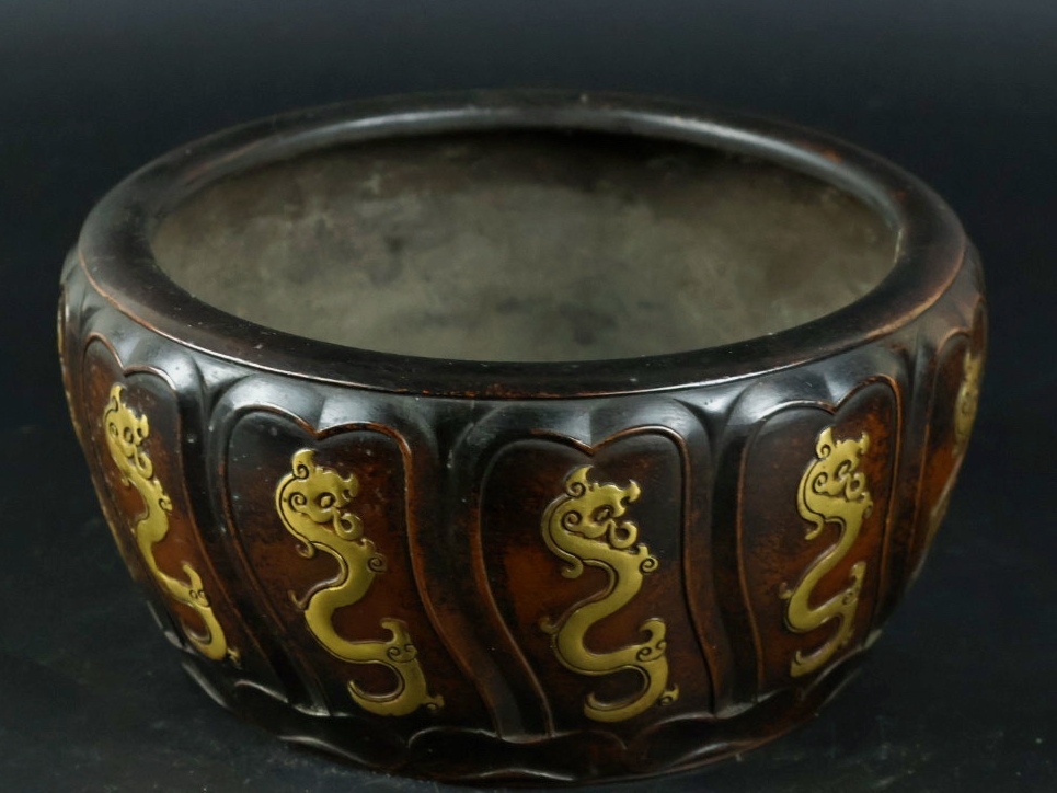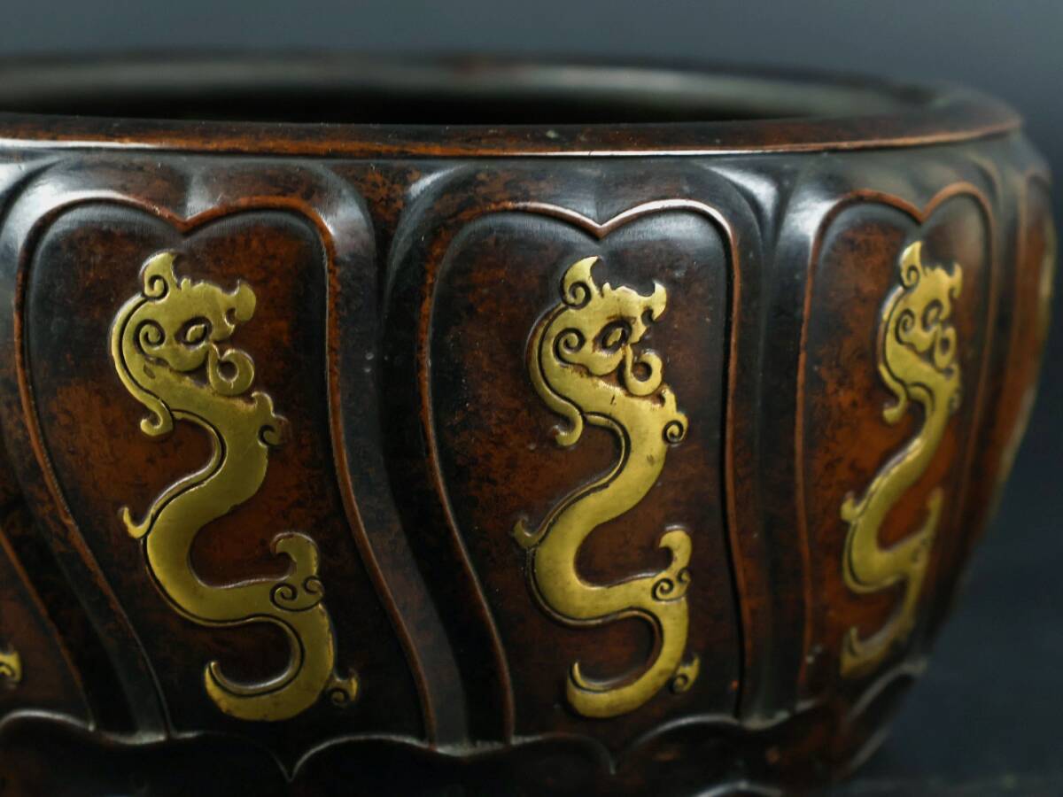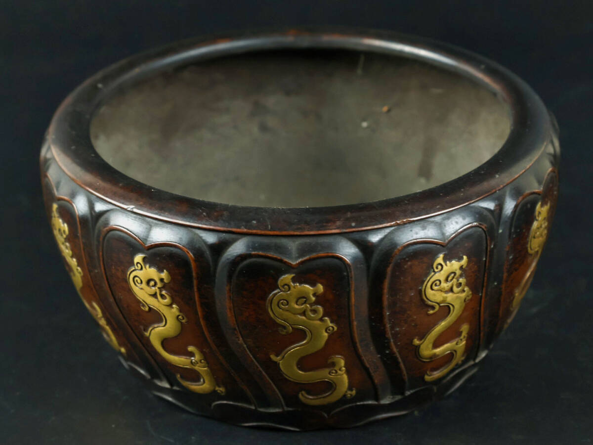 旧 清代 紫銅 龍炉 古家具 中国古美術 古賞物 古置物 唐物 S78