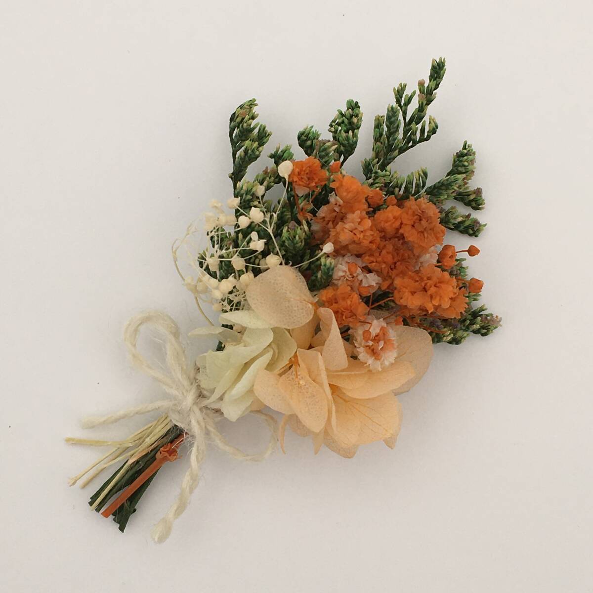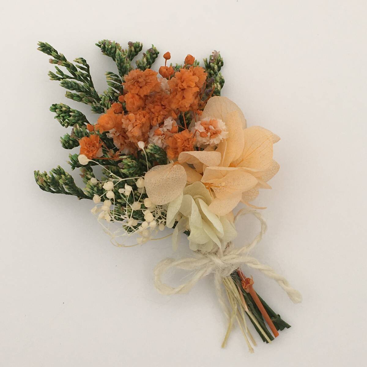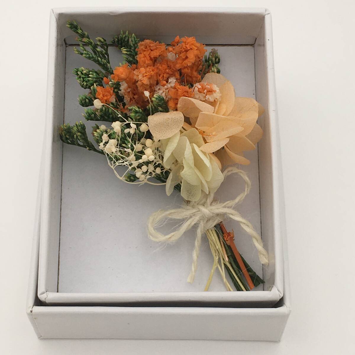 <新品>プリザーブドフラワー ブーケ 花束 オレンジ ボックス ハンドメイド アジサイ かすみ草 インテリア 仏花 ギフト プレゼント