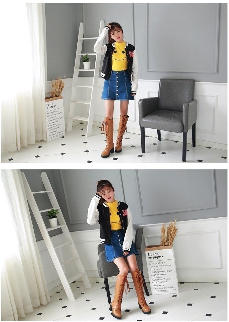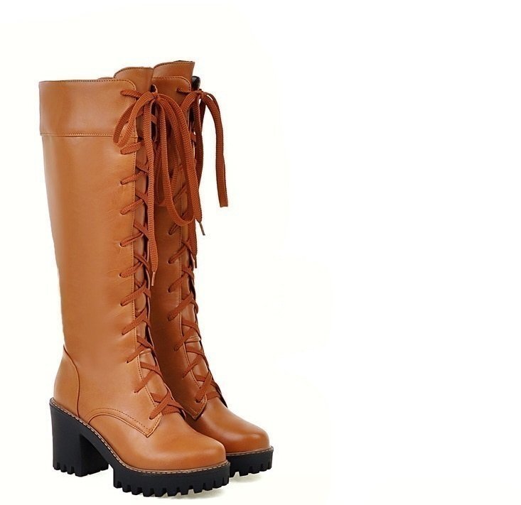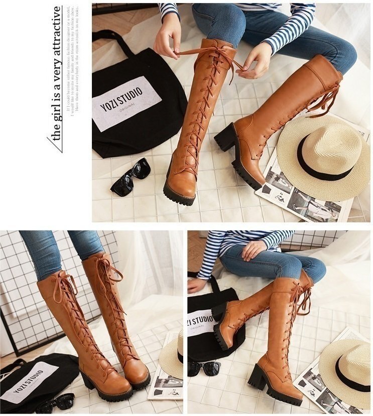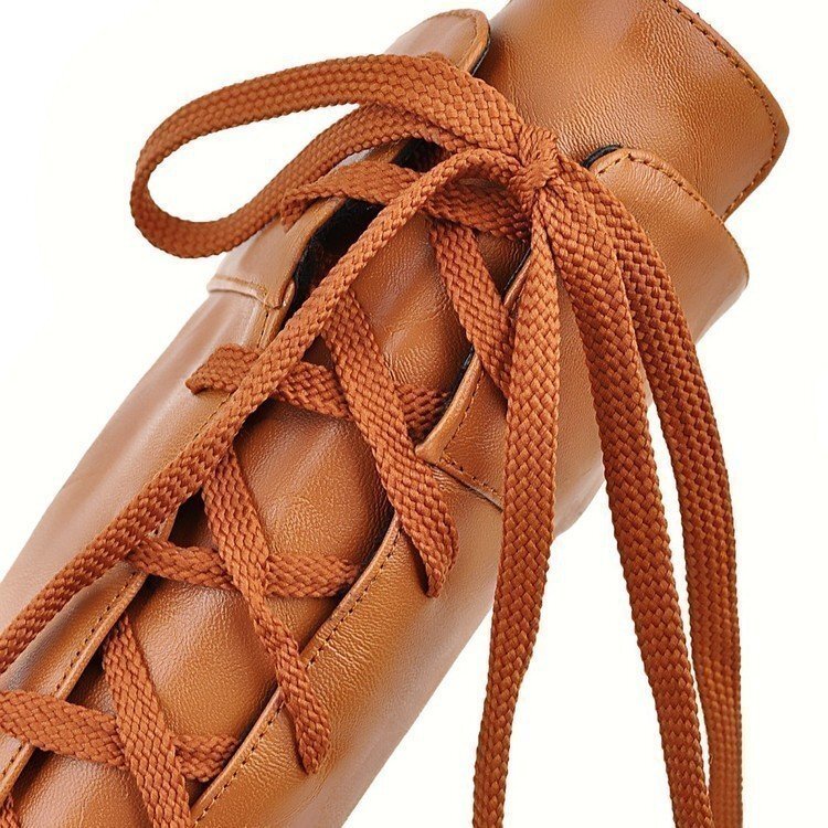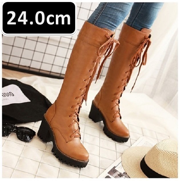 秋冬 フロック ニーハイブーツ ブラウン 24.0cm レースアップ ロングブーツ ハイヒール ブーツ 腿高 靴 美脚 新品 ☆197