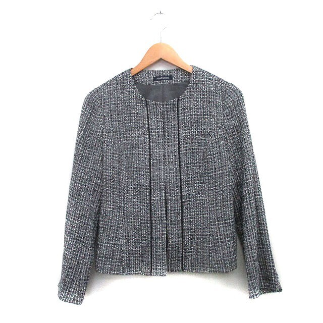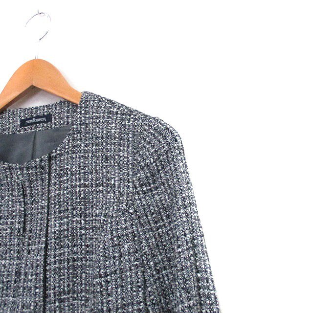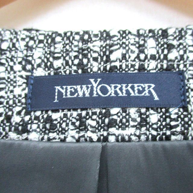 ニューヨーカー NEWYORKER ノーカラージャケット ツイード 9 ブラック 黒 /KT32 レディース