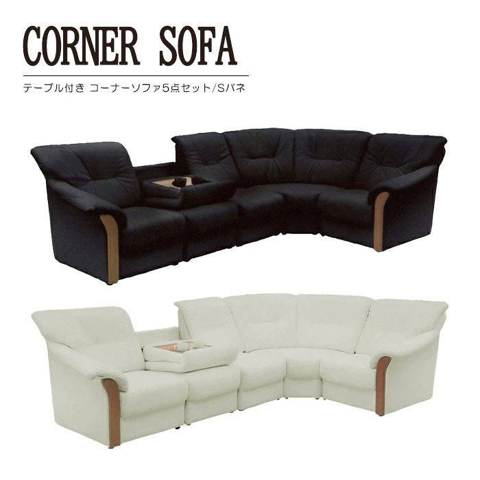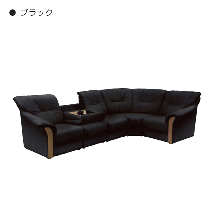 コーナーソファ 5点セット リビングソファ ハイバック ドリンクホルダー テーブル付き 合皮 PVC L字 5人用 5人掛け ブラック
