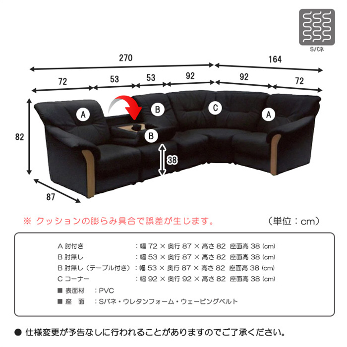 コーナー: 幅 92×奥行 92×高さ 82 (cm)