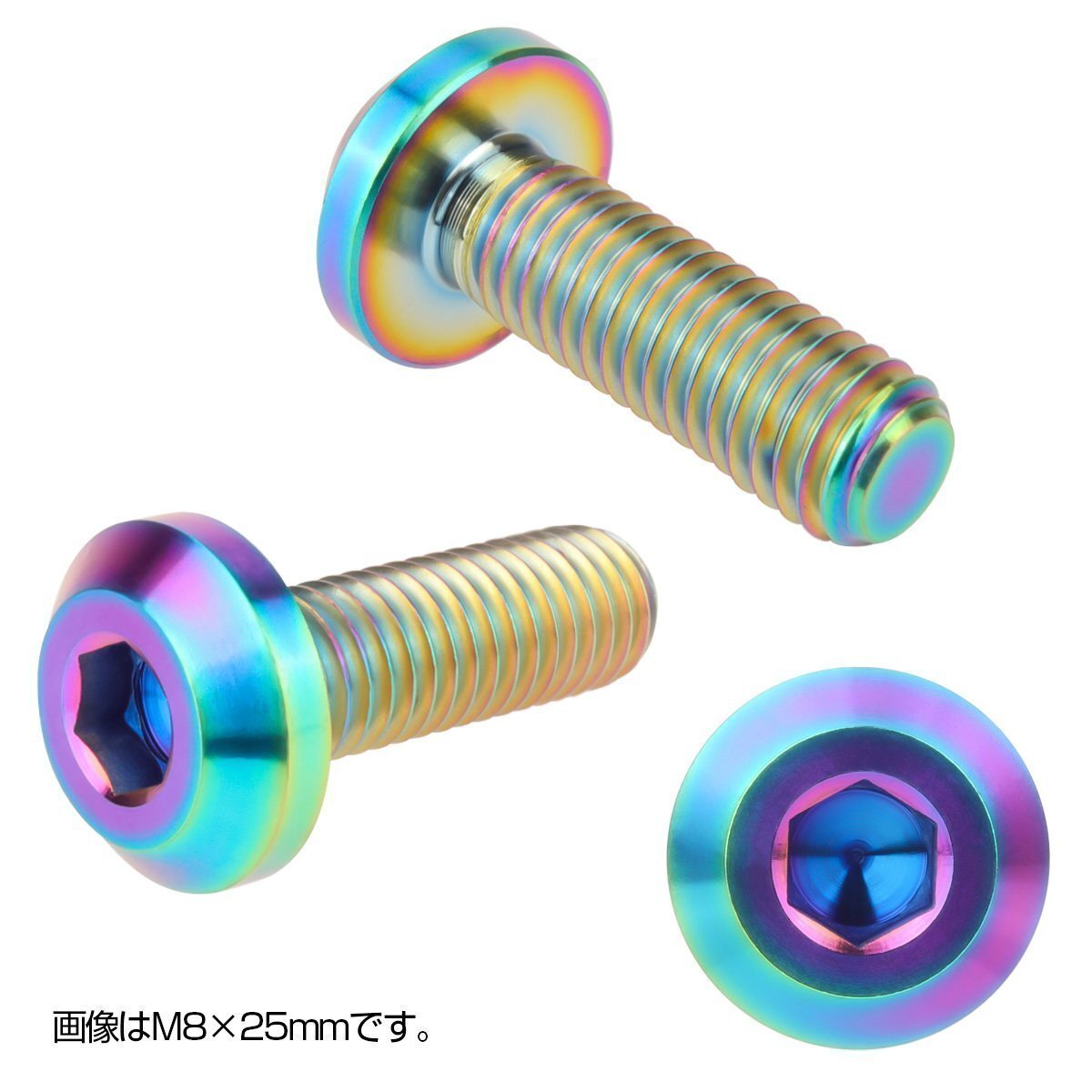 軽量・高剛性な64チタン合金製の六角穴付きボタンボルト。 デザイン性も高く、ドレスアップ要素も兼ね備えた カスタムスクリュー。 外装パーツの取り付けやワンポイントにお勧めです。 カラーバリエーション豊富で、お洒落にカスタマイズ出来ます。 ■他のサイズやカラーは⇒ こちら ■その他、チタン製スクリューは⇒ こちら | ■ テーパーヘッド ボタンボルト ■ 材質:64チタン(Ti6Al-4V) ■ カラー:焼きチタン ■ ネジの呼び:M8 ■ ピッチ:1.25 ■ 長さ:15mm(ネジ部15mm) ■ 入数:数量1で1個 価格は数量1個の価格です。5本必要な場合はご入札時の数量を5に設定してご入札下さい。 ※チタンはカジリ(焼き付き)を起こしやすい材質です。折損防止のため、グリス等のかじり防止ケミカル材のご使用をお勧めします。 | |