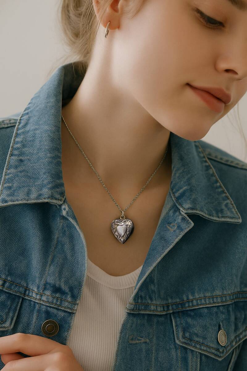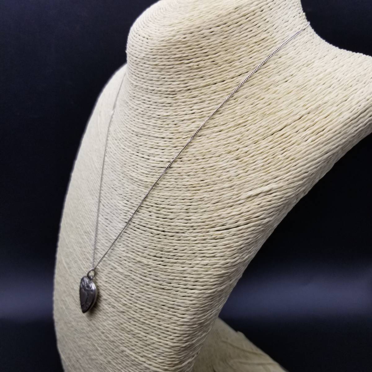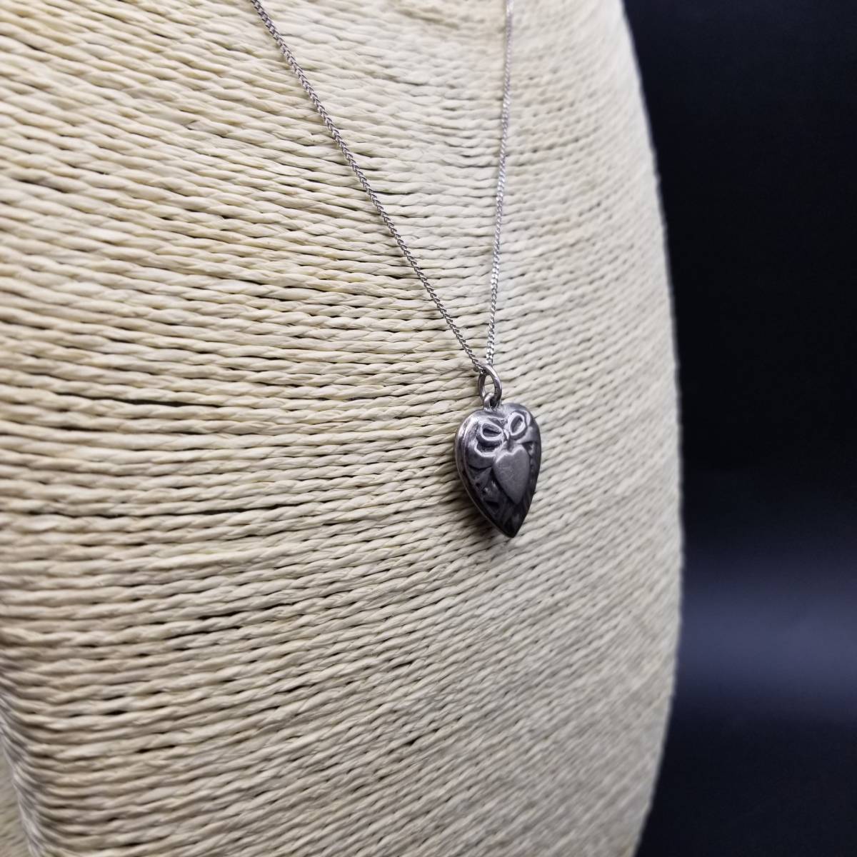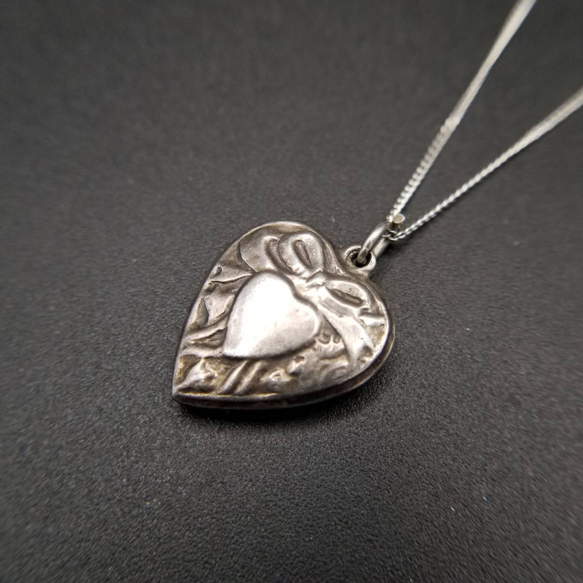 WWII期 ヴィンテージ スウィートハートジュエリー リボンをかけたハート 925 シルバー ネックレス ペンダント 銀 Puffy Heart Y12-G