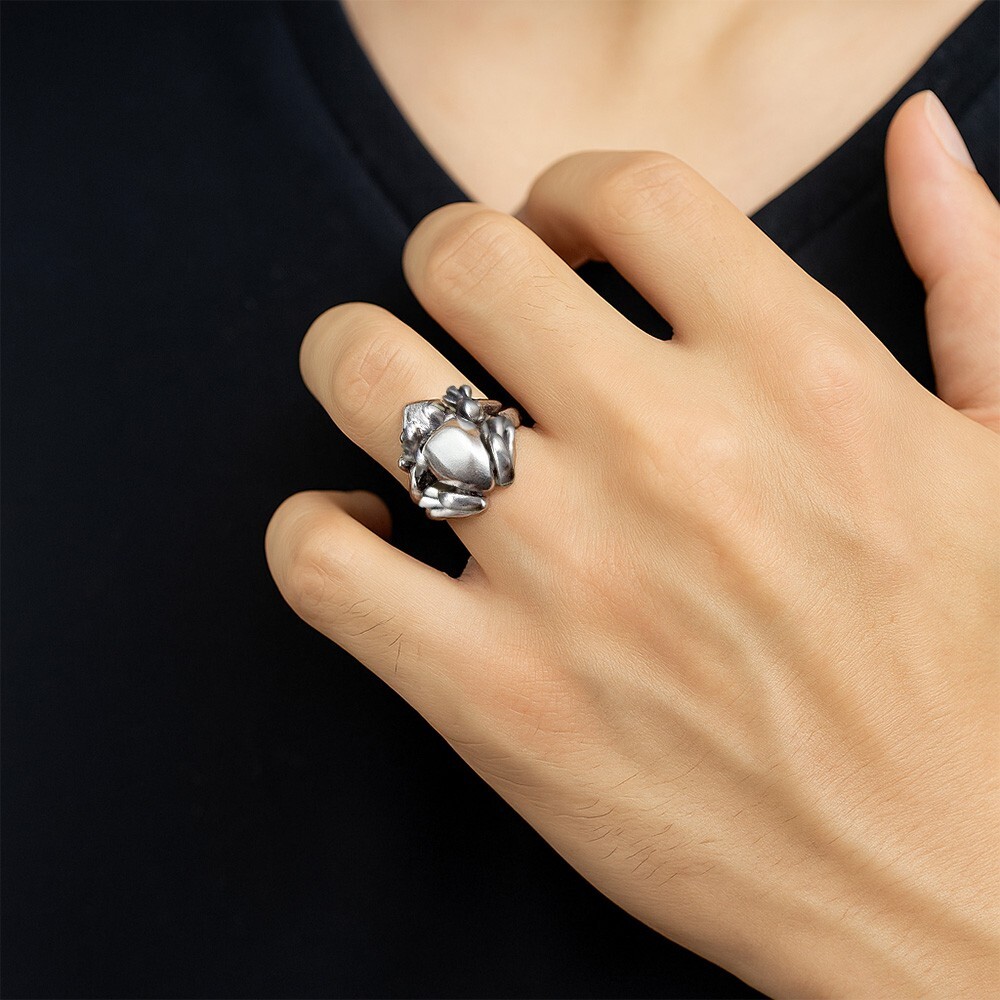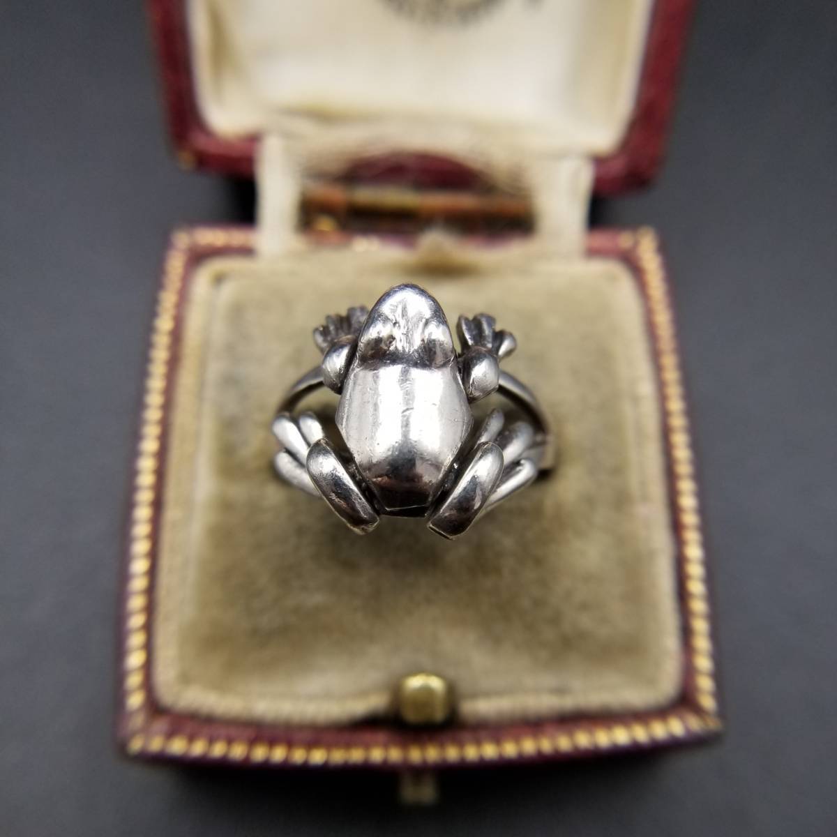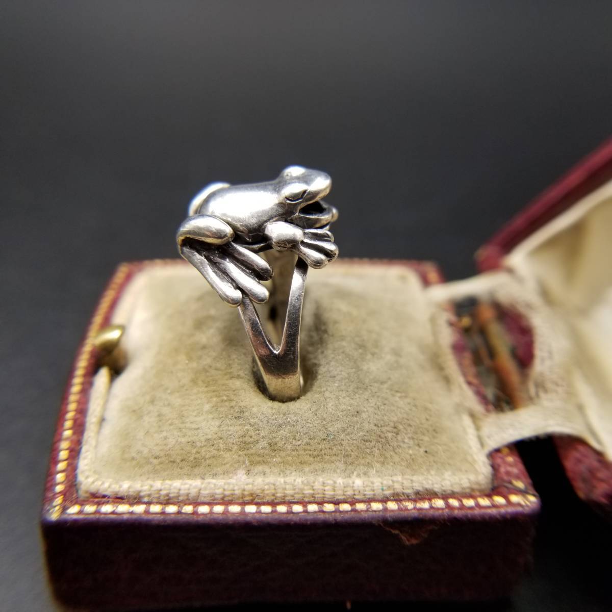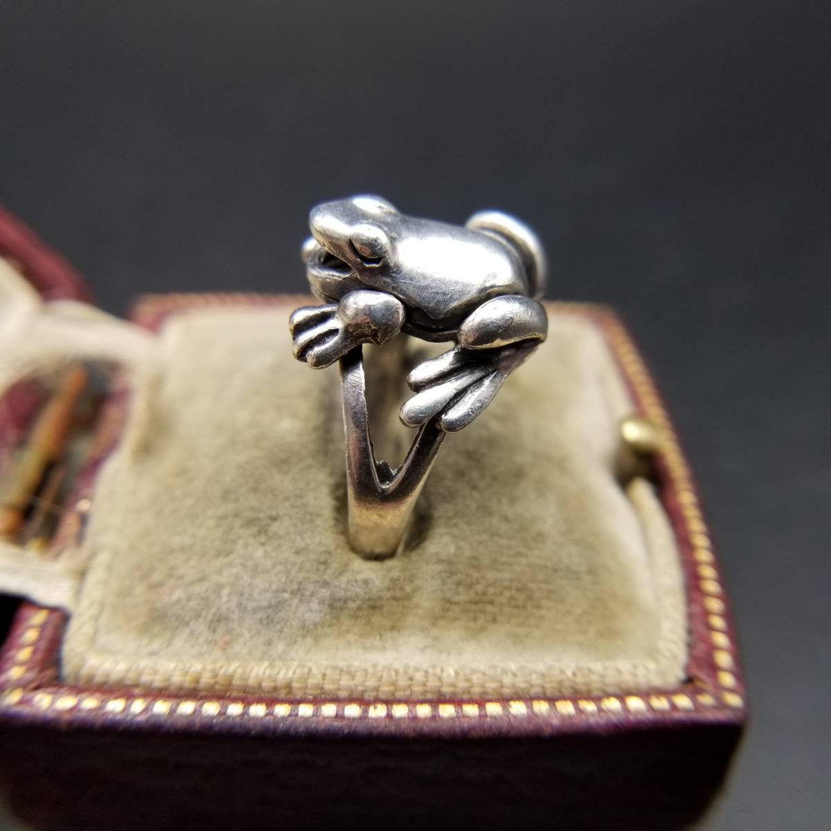 手足の動くカエル 立体彫刻 925 シルバー ヴィンテージ リング 銀 指輪 生き物 モチーフジュエリー 3D Frog Y13-B