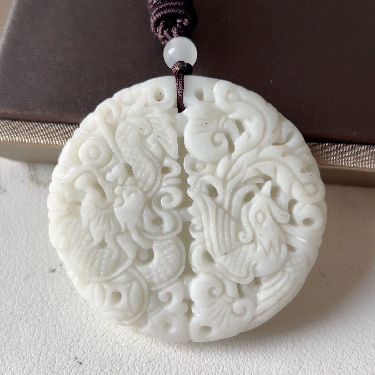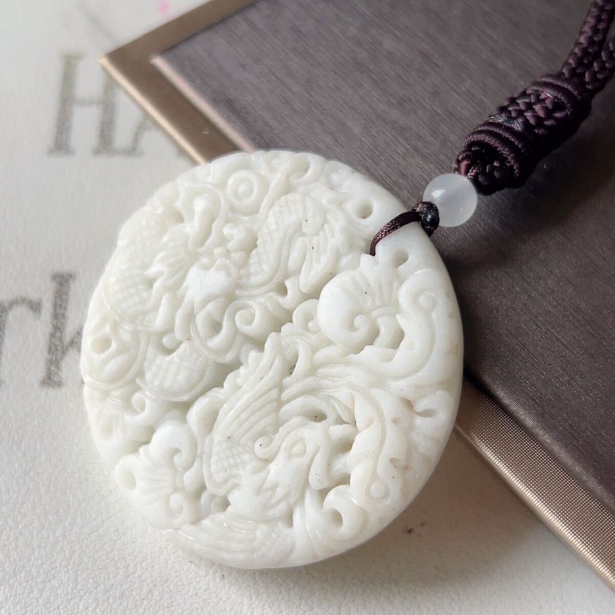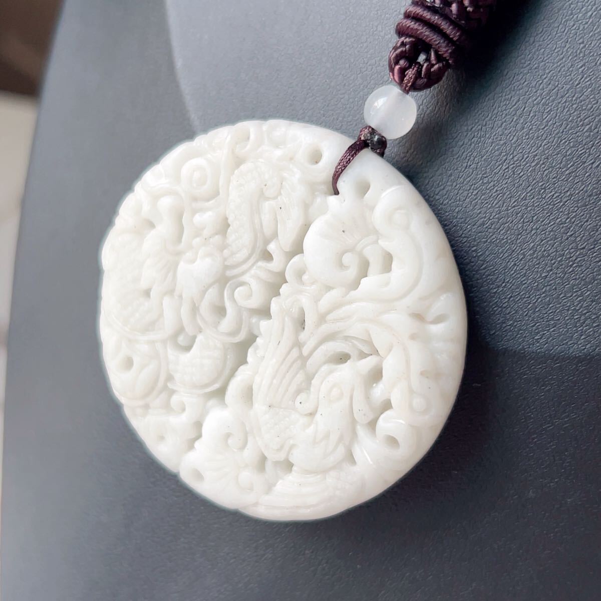 ◇藍田玉◇翡翠・ヒスイ◇ネックレス◇ペンダント◇龍鳳形◇彫刻◇天然石◇パワーストーン◇プレゼントにも040P9310