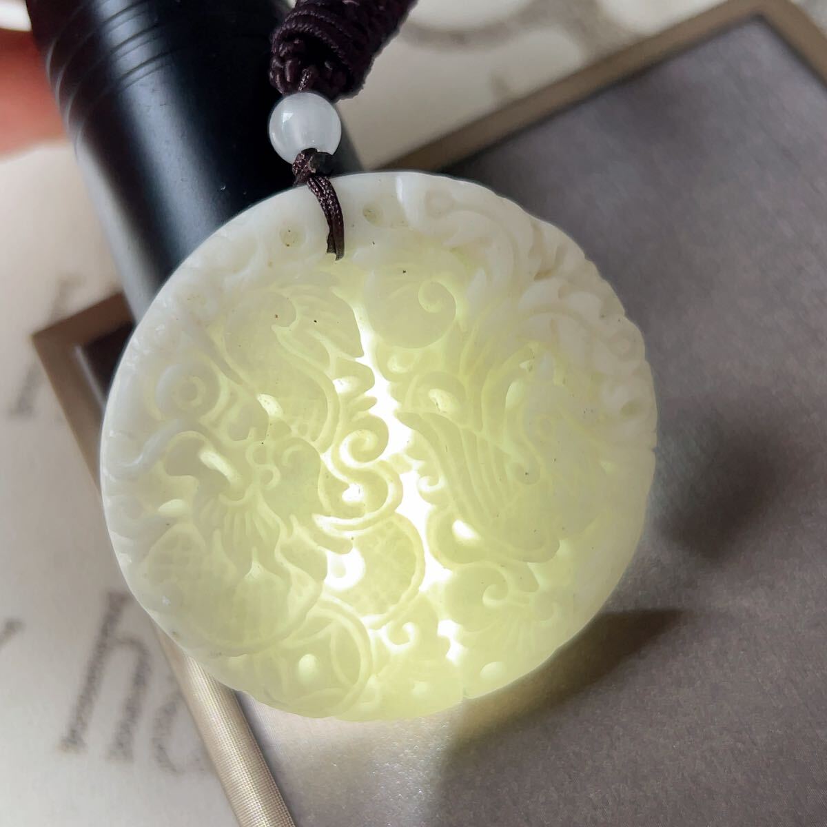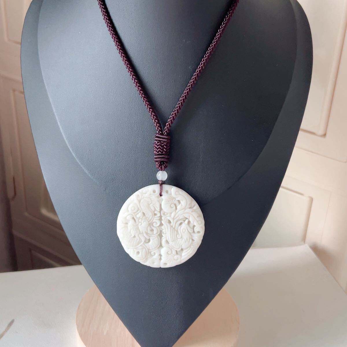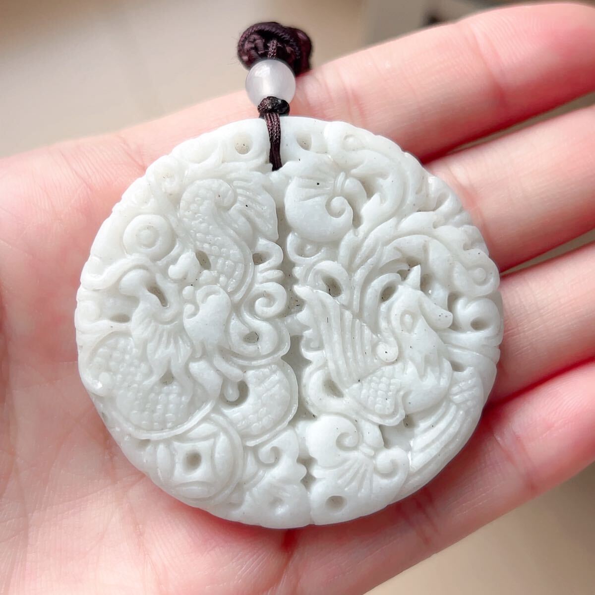 ◇藍田玉◇翡翠・ヒスイ◇ネックレス◇ペンダント◇龍鳳形◇彫刻◇天然石◇パワーストーン◇プレゼントにも040P9310