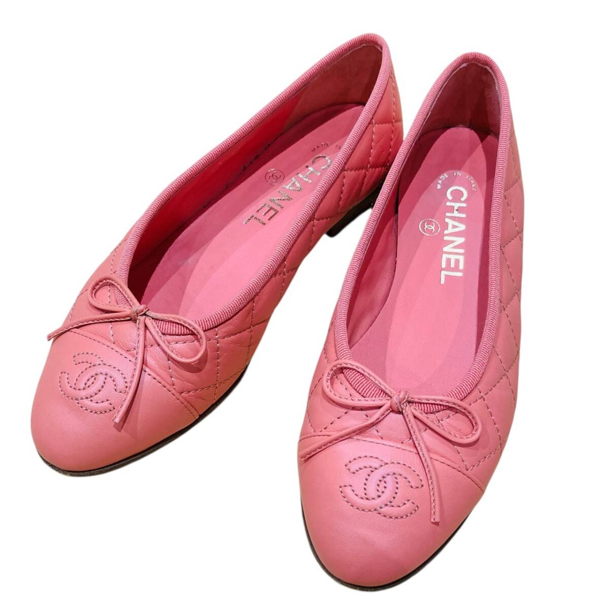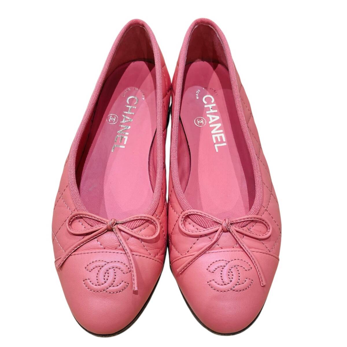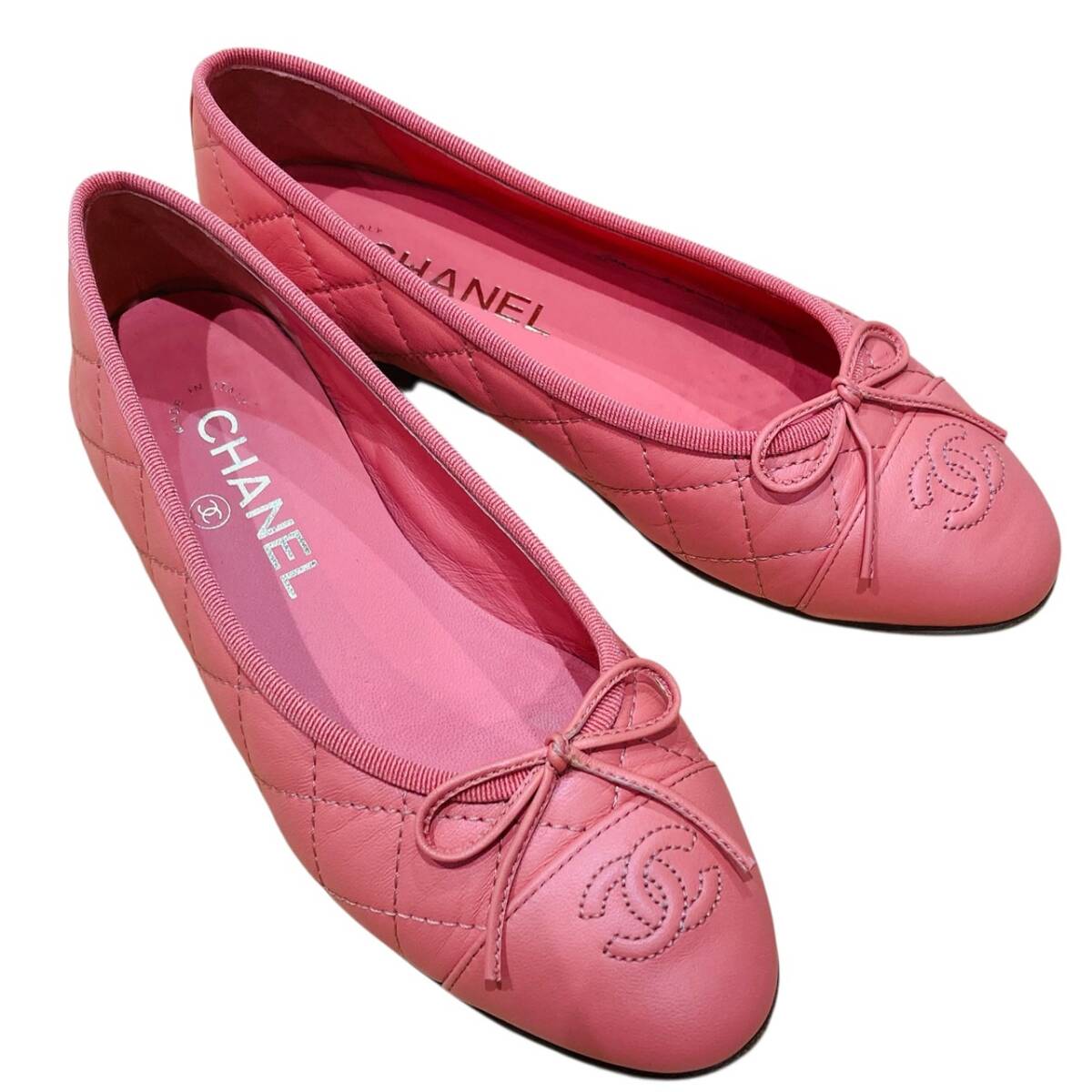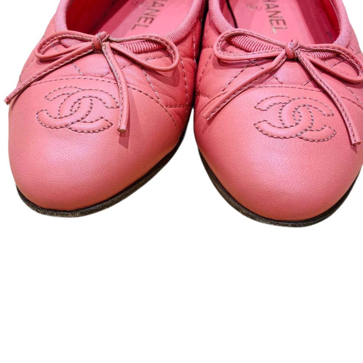 | CHANEL シャネル ココマーク キルティング リボン バレリーナ パンプス 35 1/2 C ラムスキン ピンク系 |