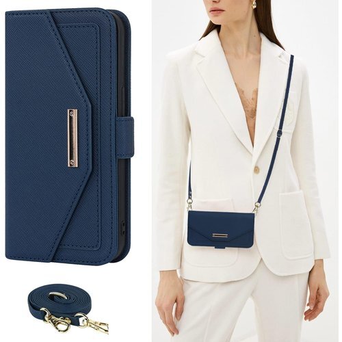 Cavor iPhone14 Pro Max 手帳型ケース 肩掛け 首かけ 斜めがけ ショルダー ケースiPhone14 Pro Maxスマホケース ショルダー 鏡付き iPhone14 Pro Max 財布型 ケース iPhone14 Pro Max スマホケース カード収納 携帯カバー マルチパスケース スタンド機能 mirror 可愛い女性 Qi急速充電対応 ブルー 716