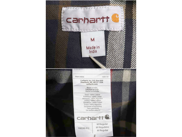 | 商品名 | US企画 カーハート コットン キャンバス シャツ ジャケット メンズ M / 古着 ワーク ダック チェック フランネル ライナー付き 長袖シャツ |