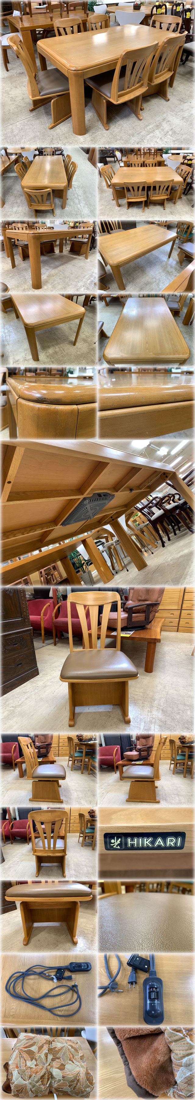 光製作所 こたつダイニング7点セット を出品いたします。 ■特徴■ 寒い時期はもちろん、 こたつ布団を外せば 夏も普通のダイニングテーブルとして使える 一年中使えるダイニングセットです。 電子コントローラー付で 適温で快適にお使い頂けます。 こたつ布団はオマケでお付けします。 チェアは回転式で 出入りがしやすくなっています。 写真に写っている周りのものは付属しません。 発送はアート家財おまかせ便でお送りします。 別途送料が発生します。 上記「発送の注意」をご確認ください 格安出品いたしますのでこの機会をお見逃しなく! |