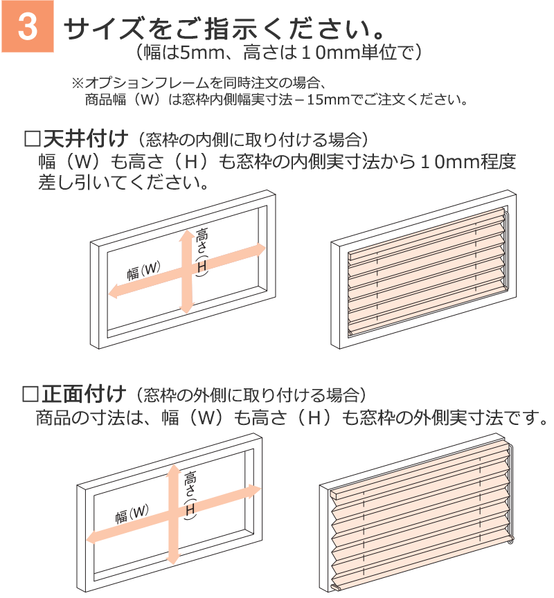 ご自宅の窓に合わせてプリーツスクリーンを幅5mm、高さは1cm単位でオーダーできます。