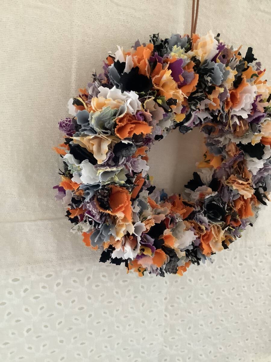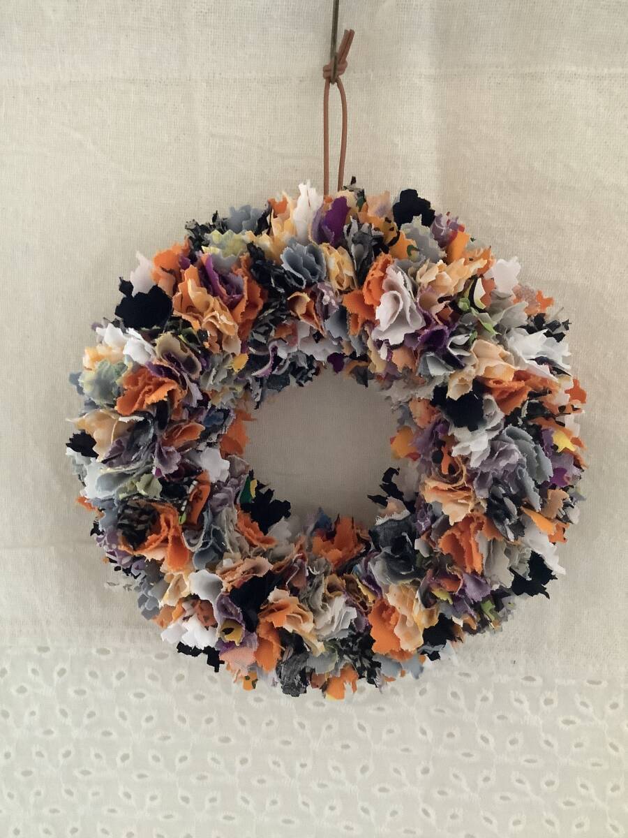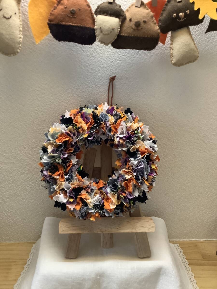 ハロウィン◆コットンリース直径約20cm*ハンドメイド♪置いても飾ってもOK秋カラー壁飾り