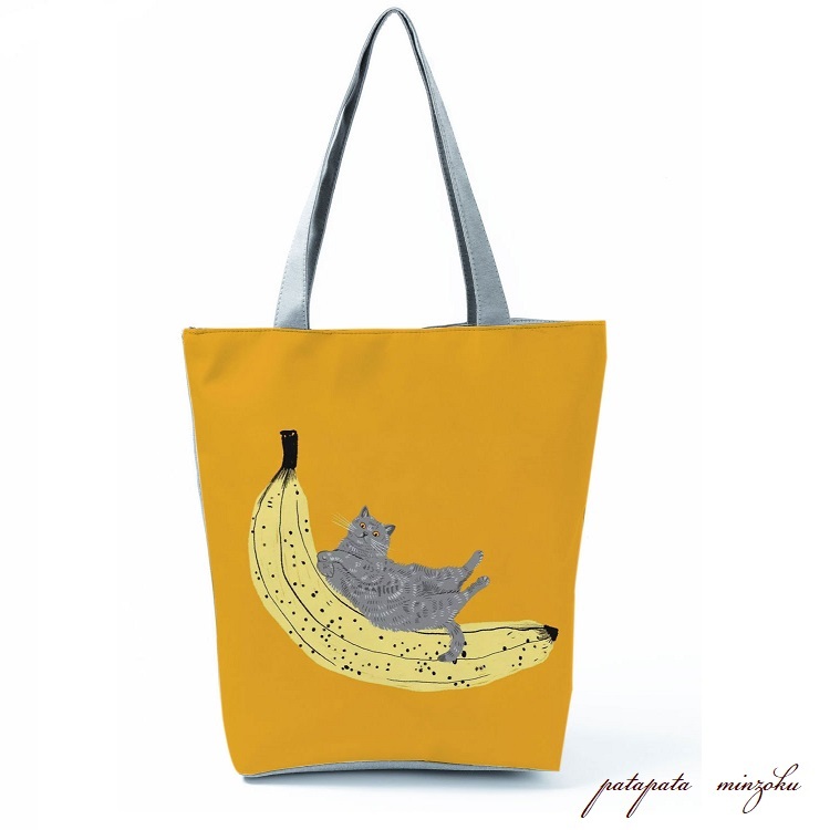 トートバッグ キャット ライドオン バナナ 猫 トートバッグ ファスナー付き 猫 エコバッグ 雑貨 ねこ ネコ 猫 レディース ユニセックス