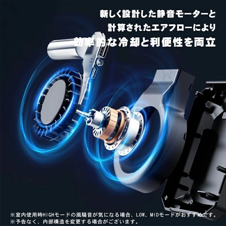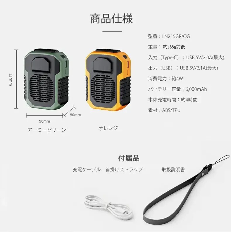 多機能6000mAh大容量扇風機、大風量を作り出す、便利なUSB充電式で、非常時などいざという時の充電に使えます。